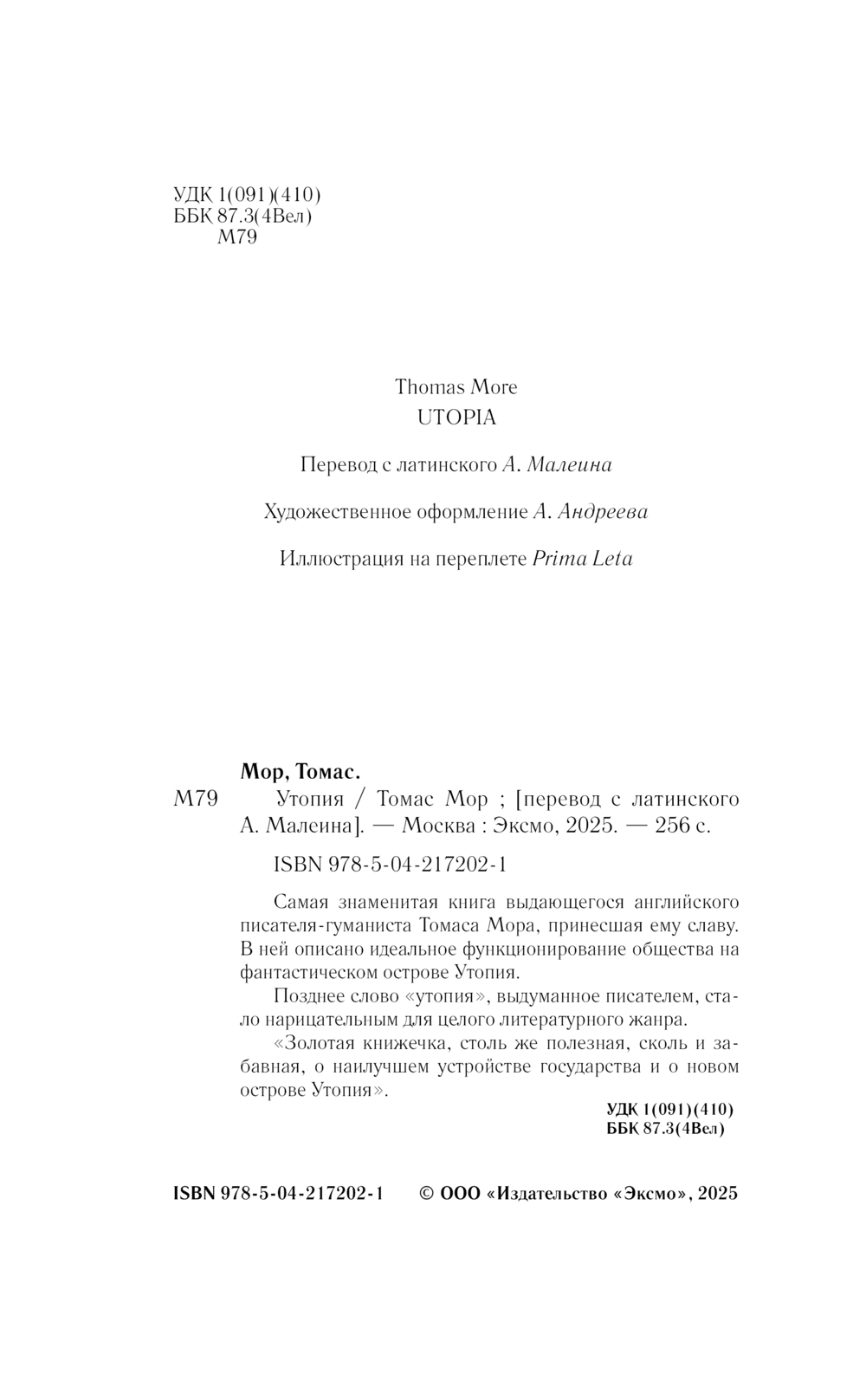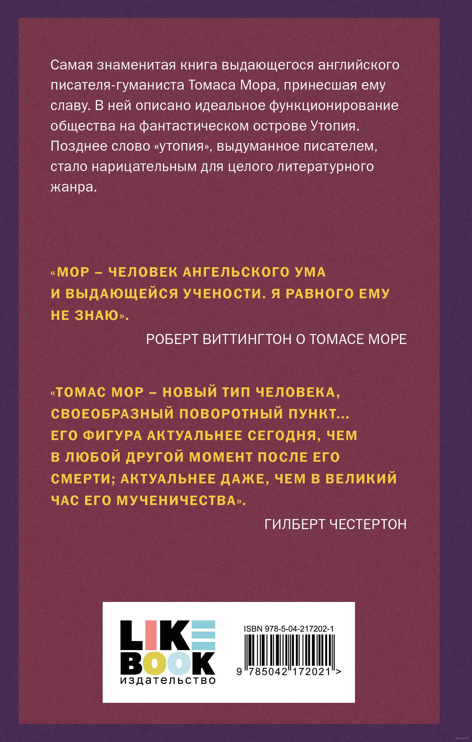 Самая знаменитая книга выдающегося английского писателя-гуманиста Томаса Мора, принесшая ему славу. В ней описано идеальное функционирование общества на фантастическом острове Утопия.