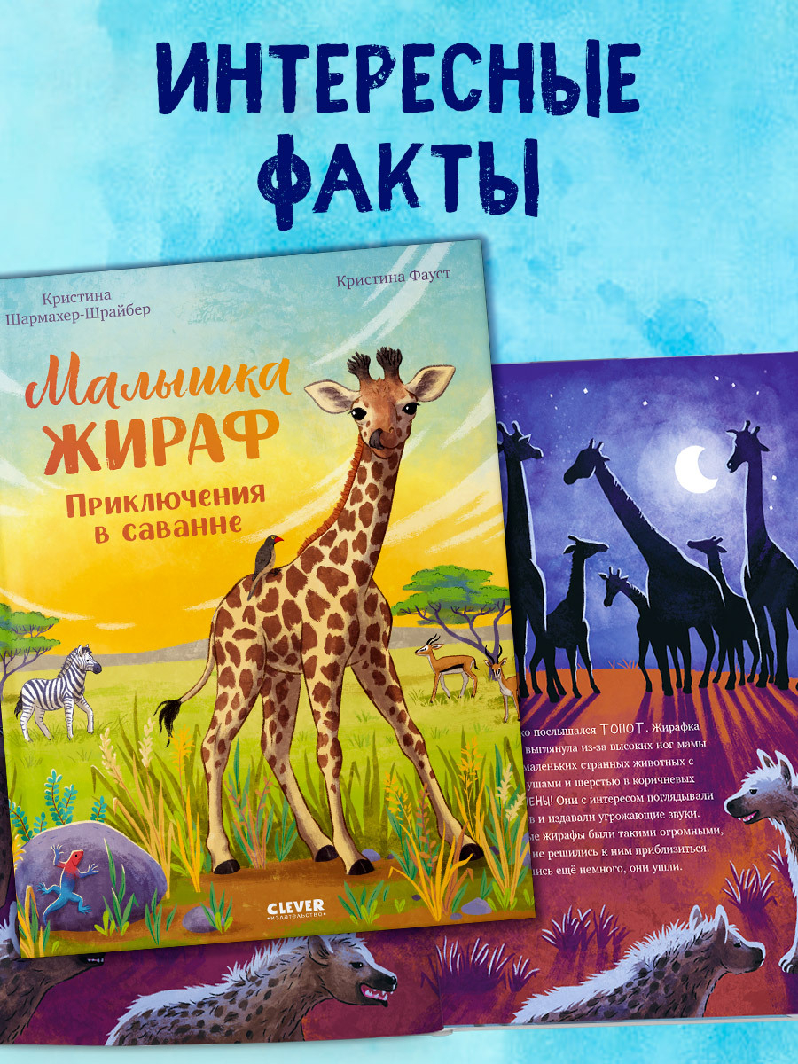 "Малышка-жираф. Приключения в саванне" – добрая история о приключениях маленькой жирафы, прекрасное первое чтение с большими детальными иллюстрациями. Книжка познакомит маленьких читателей с окружающим миром, с жителями жаркой Африки и с жизнью самых удивительных животных – жирафов.