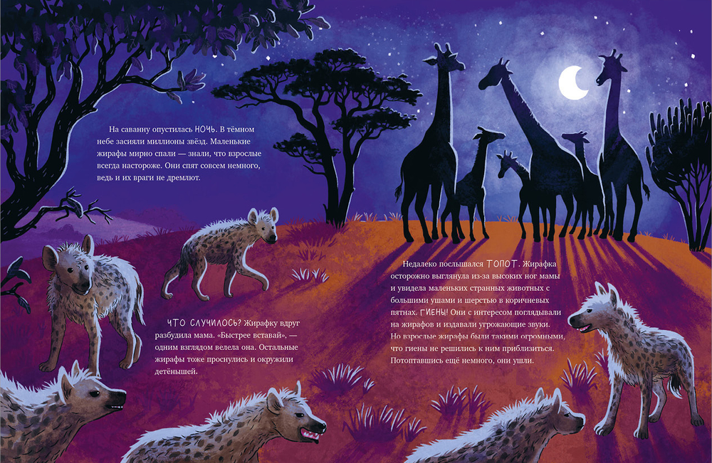 В жаркой африканской саванне на свет появилась малышка-жираф. Скоро она сделает первые шаги, распробует сочные листья акации, познакомится с другими животными, сделает много открытий и узнает все об удивительном мире вокруг!