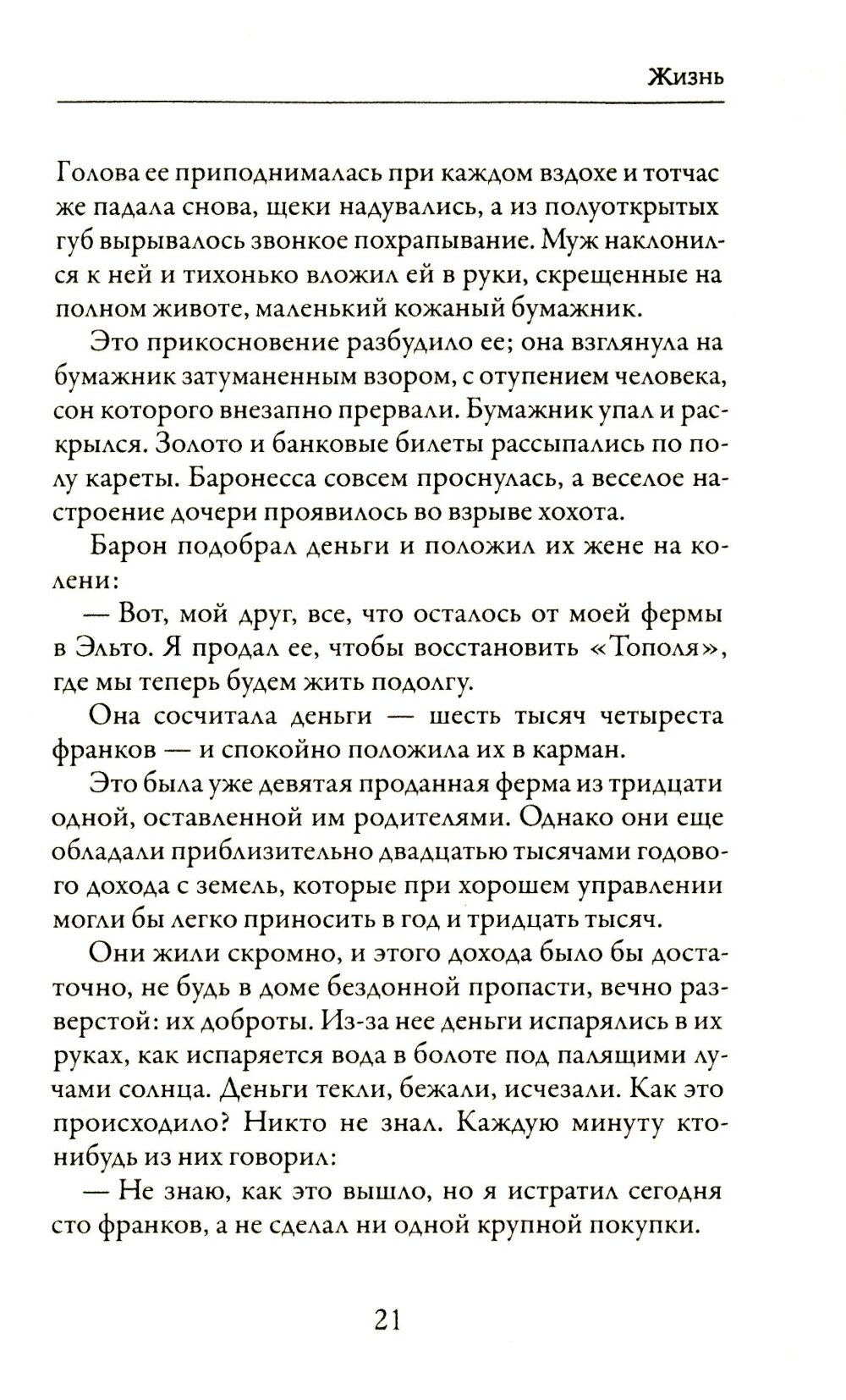 Л. Н. Толстой так описывал первый роман Ги де Мопассана, классика французской литературы XIX века: "„Une vie“ („Жизнь“) превосходный роман, не только несравненно лучший роман Мопассана, но едва ли не лучший французский роман после „Miserables“ („Отверженных“) Гюго".