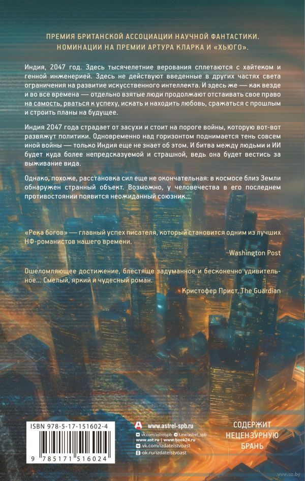 Индия, 2047 год. Здесь тысячелетние верования сплетаются с хайтеком и генной инженерией. Здесь не действуют введенные в других частях света ограничения на развитие искусственного интеллекта. И здесь же – как везде и во все времена – отдельно взятые люди продолжают отстаивать свое право на самость, рваться к успеху, искать и находить любовь, сражаться с прошлым и строить планы на будущее.