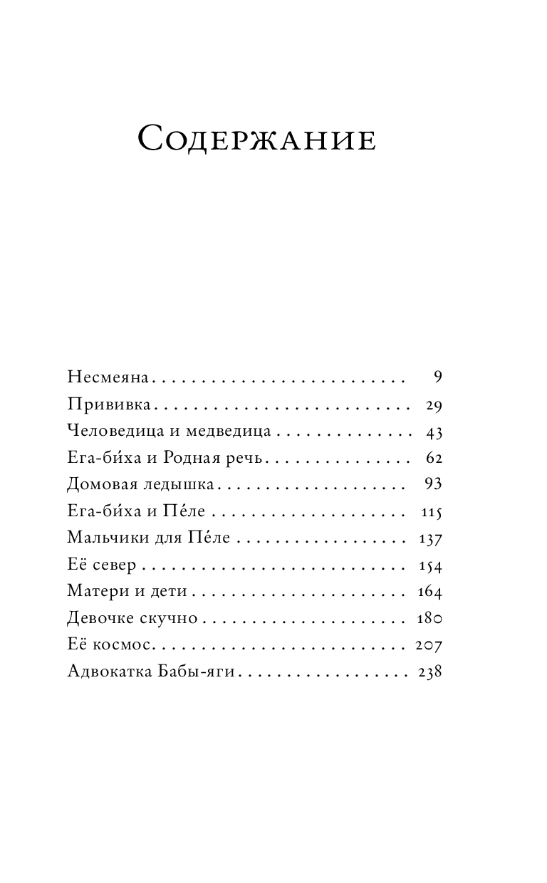 "Адвокатка Бабы-яги" – истории о людях и магических существах. Здесь мир, в котором медведи собирают фарфоровые фигурки людей, а Родная речь живет у Ега-бѝхи в переднике; здесь заговоры плохо действуют, но домовые всё равно охраняют дома. И это не сказки, а небыль, прочно сшитая с реальностью.