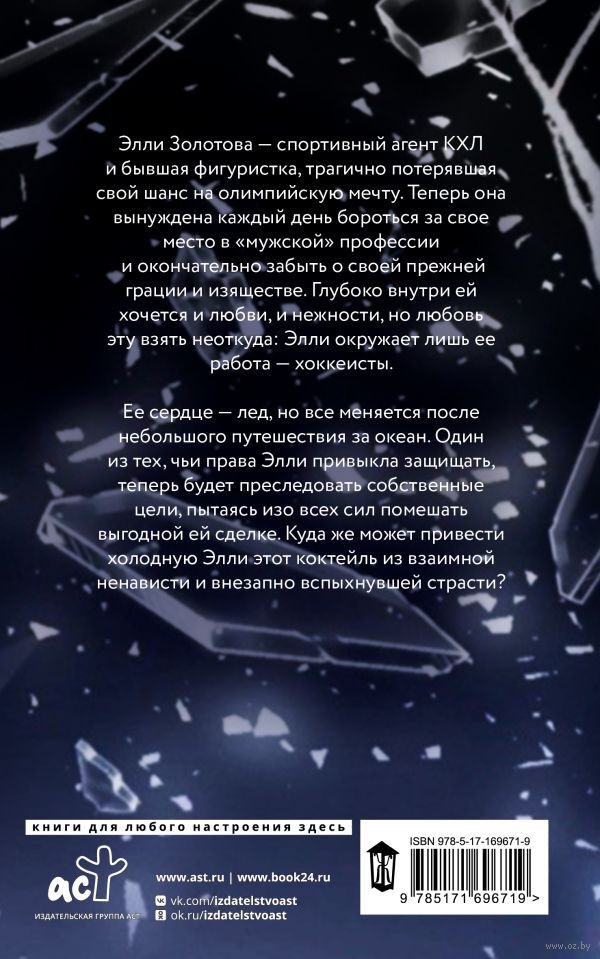 Элли Золотова – спортивный агент КХЛ и бывшая фигуристка, трагично потерявшая свой шанс на олимпийскую мечту. Теперь она вынуждена каждый день бороться за свое место в "мужской" профессиии окончательно забыть о своей прежней грации и изяществе. Глубоко внутри ей хочется и любви, и нежности, но любовь эту взять неоткуда: Элли окружает лишь ее работа – хоккеисты. Ее сердце – лед, но все меняется после небольшого путешествия за океан. Один из тех, чьи права Элли привыкла защищать, теперь будет преследовать собственные цели, пытаясь изо всех сил помешать выгодной ей сделке. Куда же может привести холодную Элли этот коктейль из взаимной ненависти и внезапно вспыхнувшей страсти?