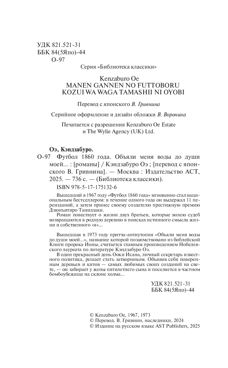 Вышедшая в 1973 году притча-антиутопия "Объяли меня воды до души моей…", название которой позаимствовано из библейской Книги пророка Ионы, считается главным произведением Нобелевского лауреата по литературе Кэндзабуро Оэ.