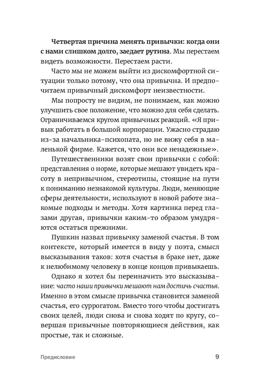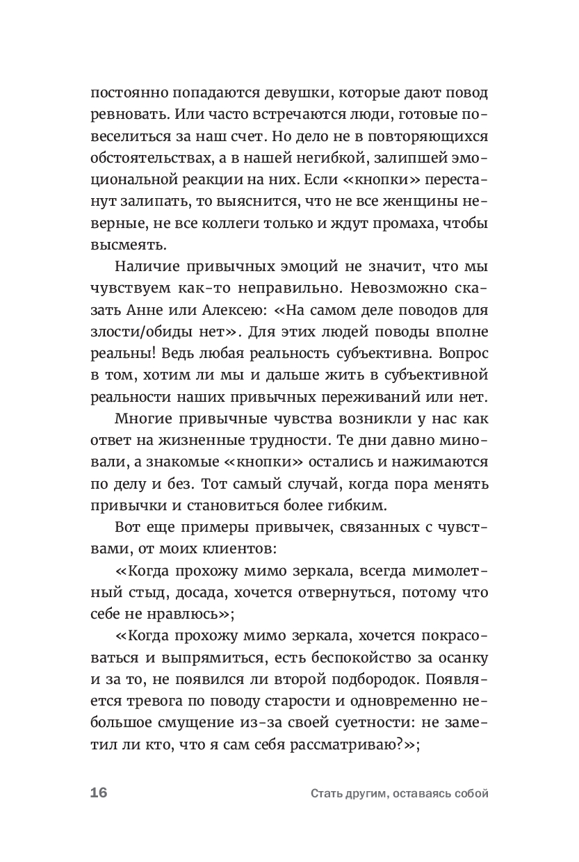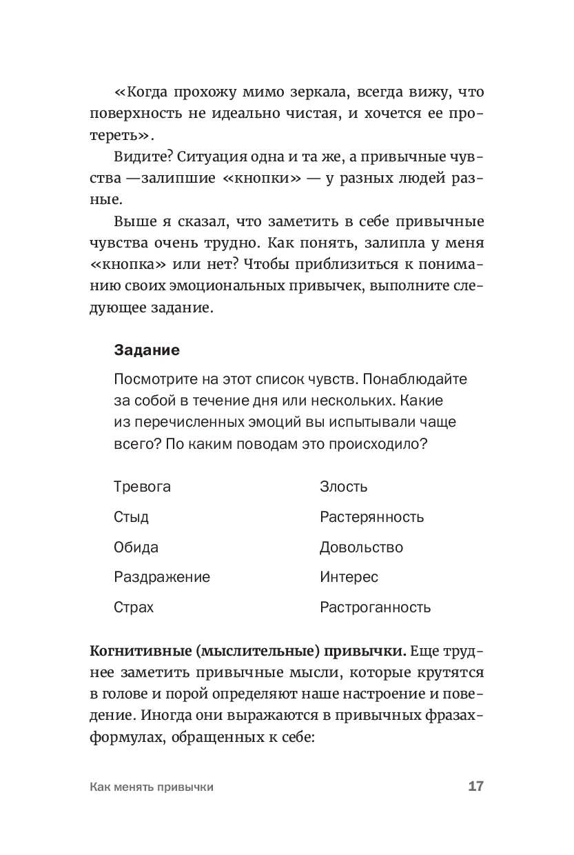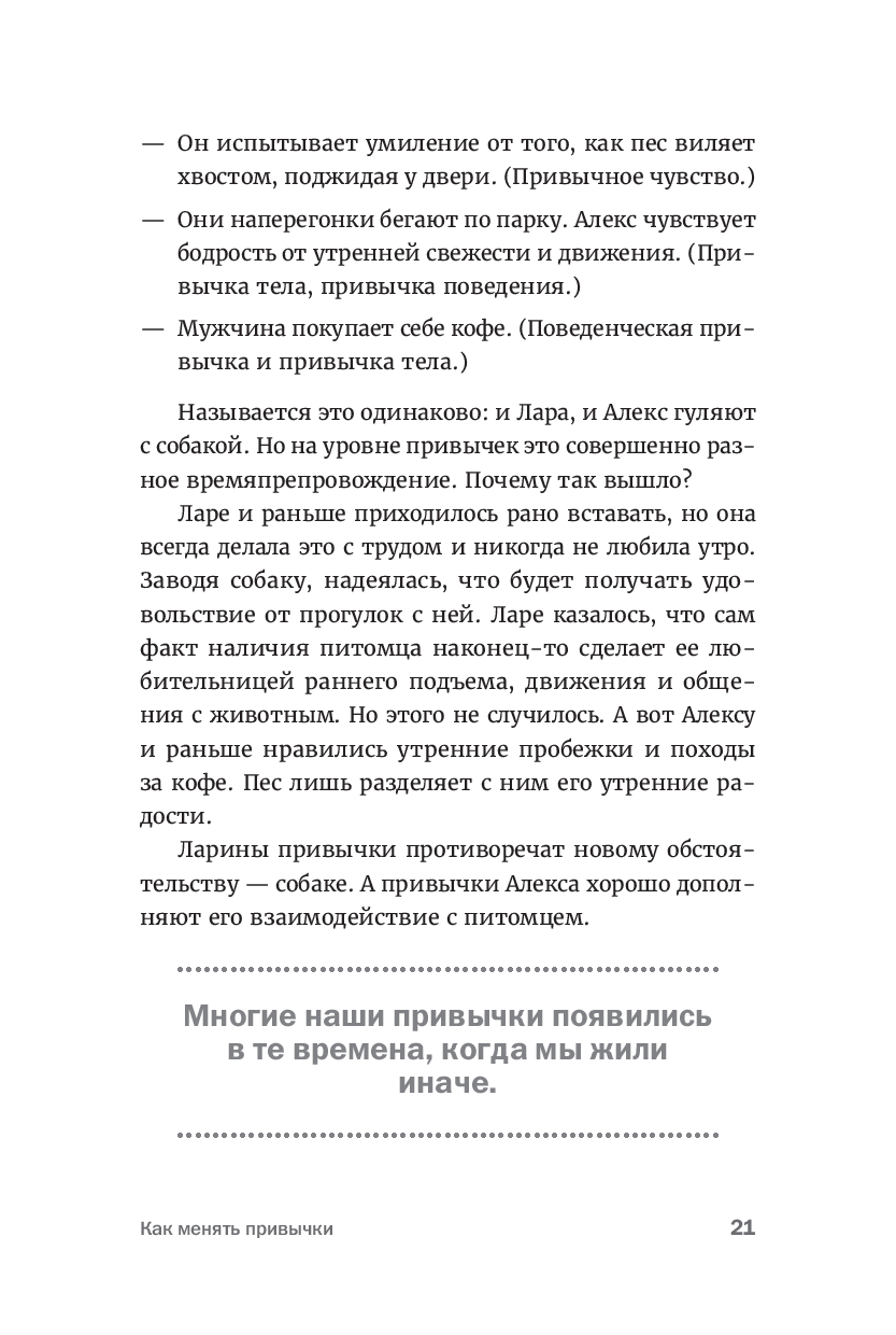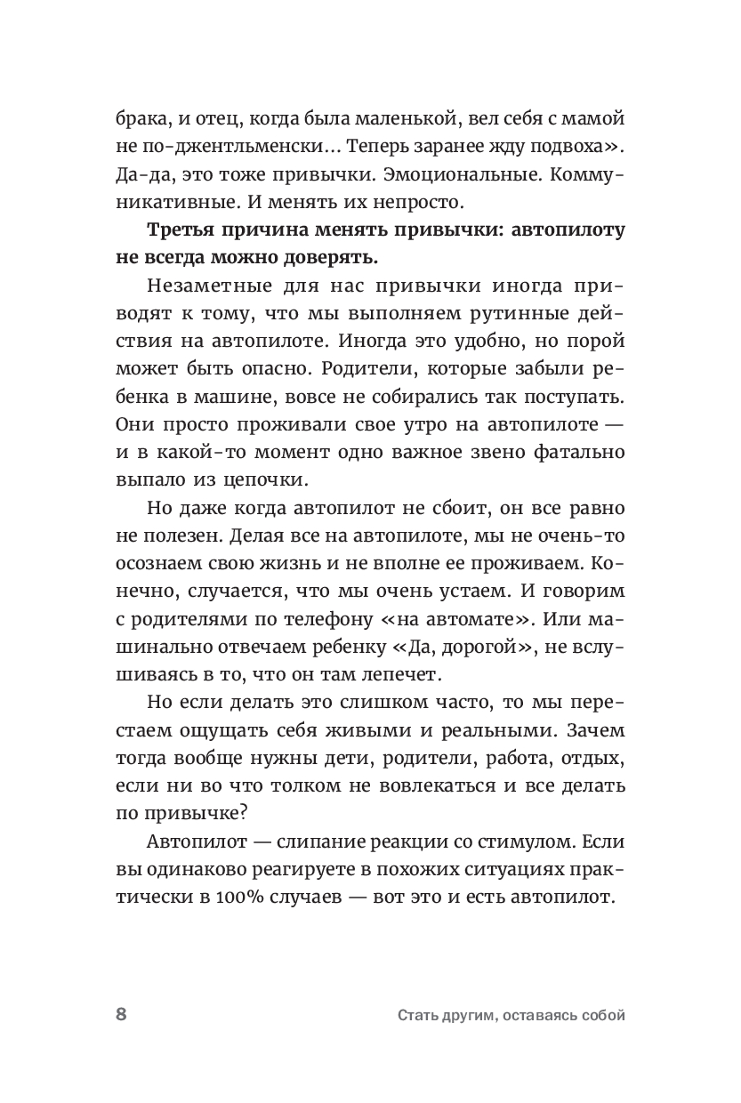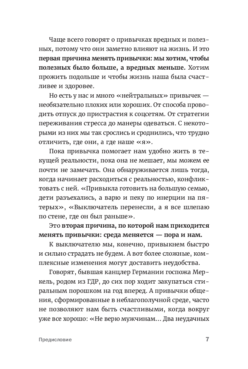 Автор считает, что для эффективного изменения любой привычки необходимо разделить ее на более мелкие "микропривычки" и работать с каждой из них. Кроль предлагает конкретные стратегии: от простых изменений в поведении до сложной работы с эмоциями и мыслительными паттернами. На примерах из реальной практики автор демонстрирует, как применять свой подход, помогая читателю не только изменить конкретные привычки, но и стать более гибким, открытым к новому опыту и способным управлять своей жизнью.