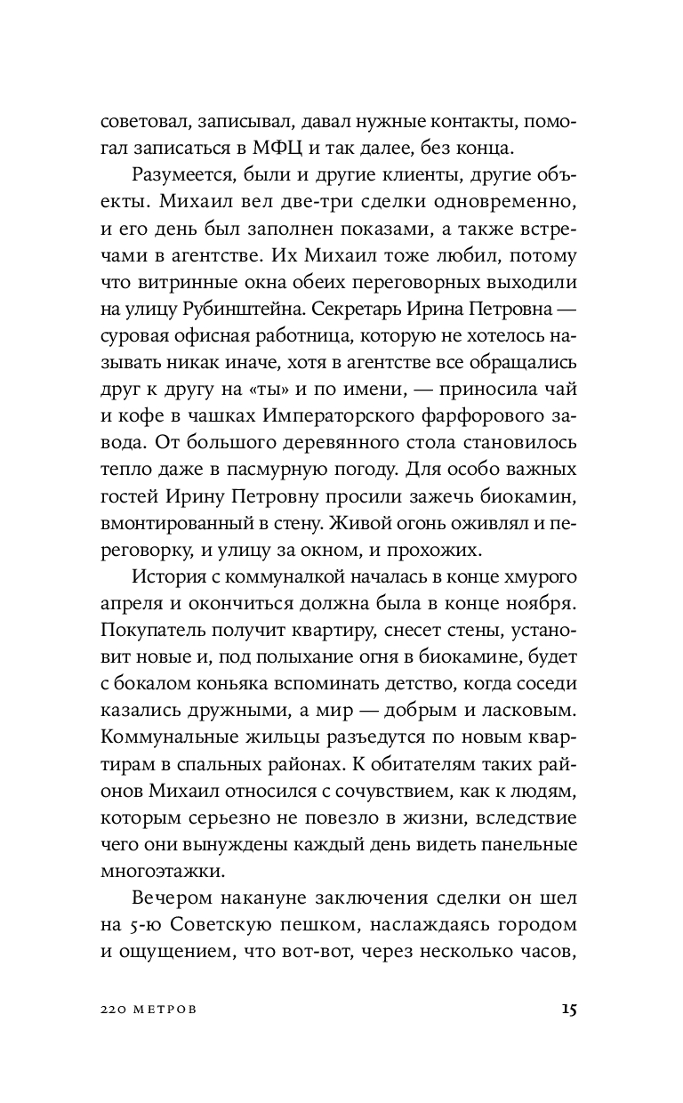 Агент по недвижимости Михаил долго готовил сделку по расселению десятикомнатной петербургской коммуналки. Но накануне продажи в одной из комнат под полом обнаруживают труп. Тем временем Лена, жена Михаила, подозревает, что случившееся связано с событиями из ее юности. Пока идет расследование, отношения Михаила и Лены проходят одно испытание за другим: возвращаются люди из прошлого, а настоящее таит немало загадок.