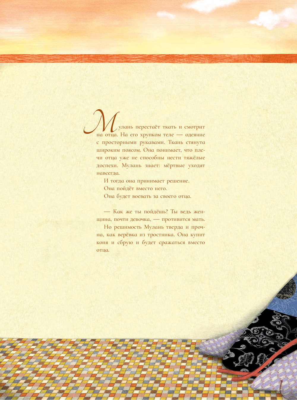 Это красивое повествование о сильной и храброй женщине-воине, вдохновлённое китайской балладой XII века.