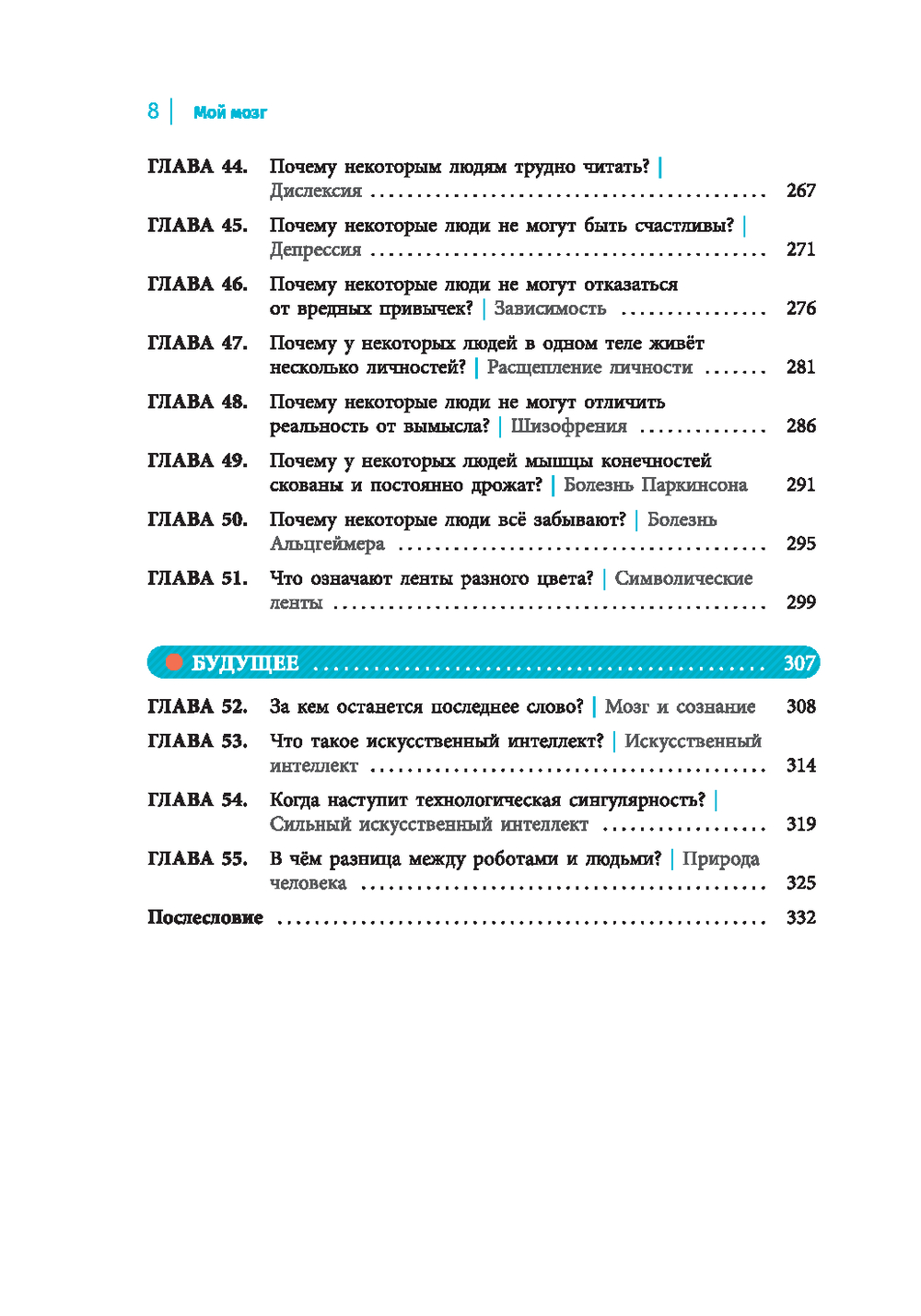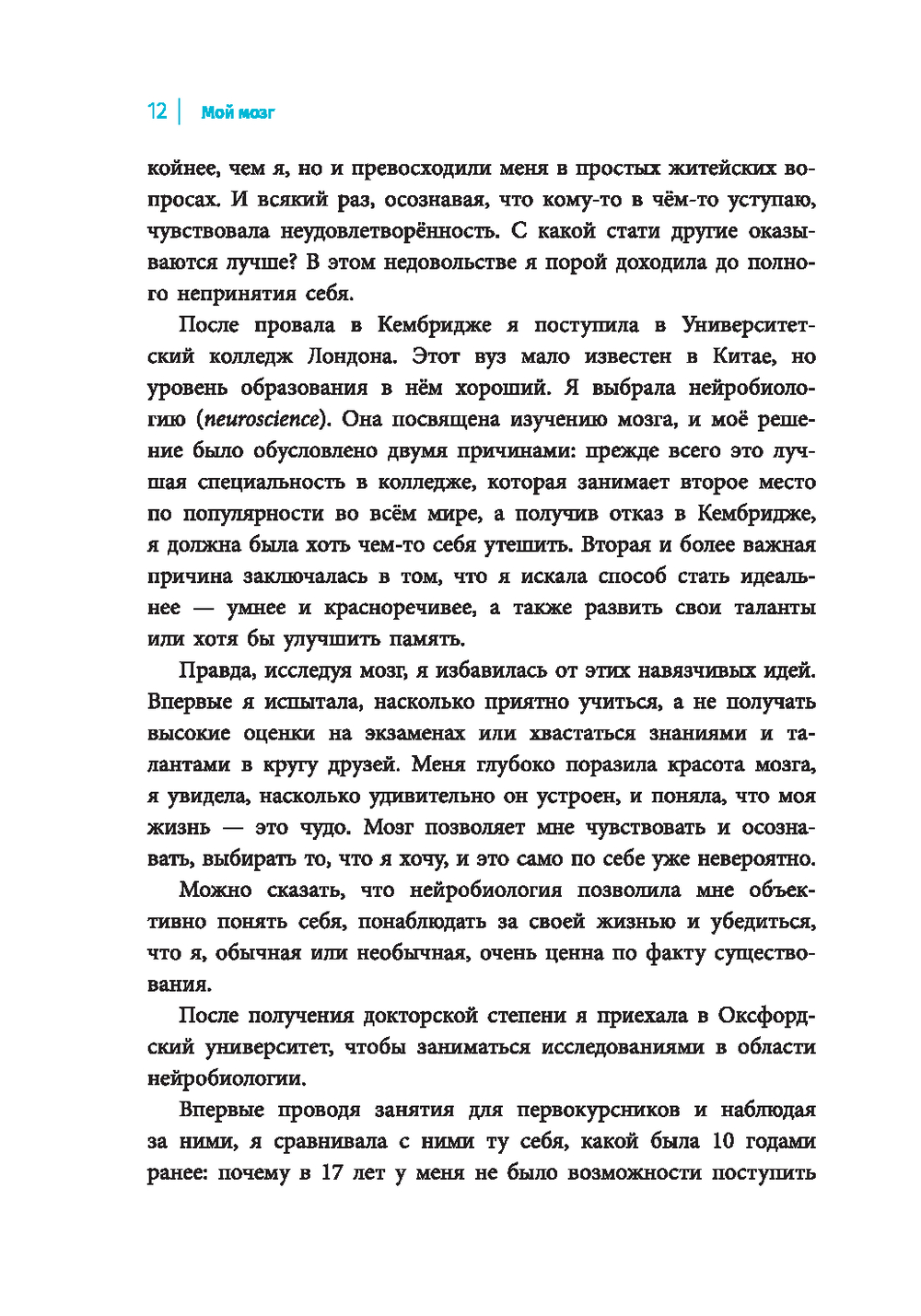 Научно-популярная книга для подростков, написанная знаменитой Сыцзя Чжао, доктором нейробиологии Оксфордского университета. Раскрывая 55 простых вопросов, интересных даже детям, она рассказывает о важной области знаний, которую не преподают школьные учителя, – об устройстве нашего мозга. В изложении автора это уже не скучная и сложная теория, а увлекательные факты, тесно связанные с повседневной жизнью каждого ребёнка. С одной стороны, книга объясняет, как эффективнее учиться, отдыхать и развиваться через игры; с другой – даёт научное объяснение эмоциям, поведению и другим явлениям, которые волнуют подростков.