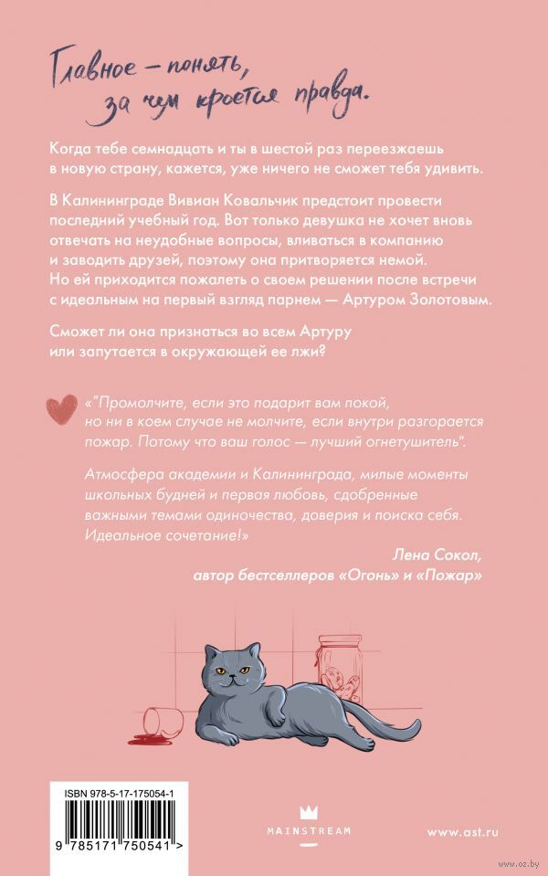 В Калининграде Вивиан Ковальчик предстоит провести последний учебный год. Вот только девушка не хочет вновь отвечать на неудобные вопросы, вливаться в компанию и заводить друзей, поэтому она притворяется немой. Но ей приходится пожалеть о своем решении после встречи с идеальным на первый взгляд парнем – Артуром Золотовым.