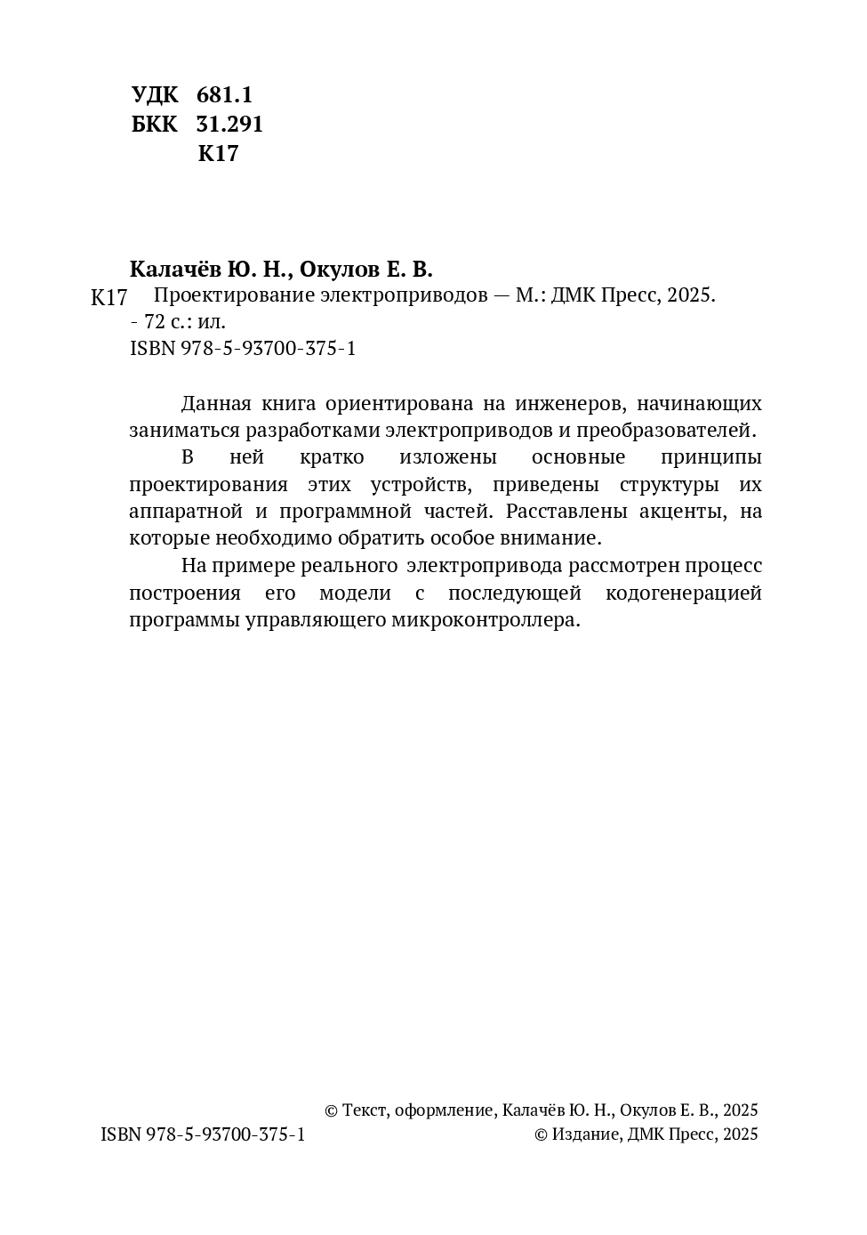 Данная книга ориентирована на инженеров, начинающих заниматься разработками электроприводов и преобразователей.