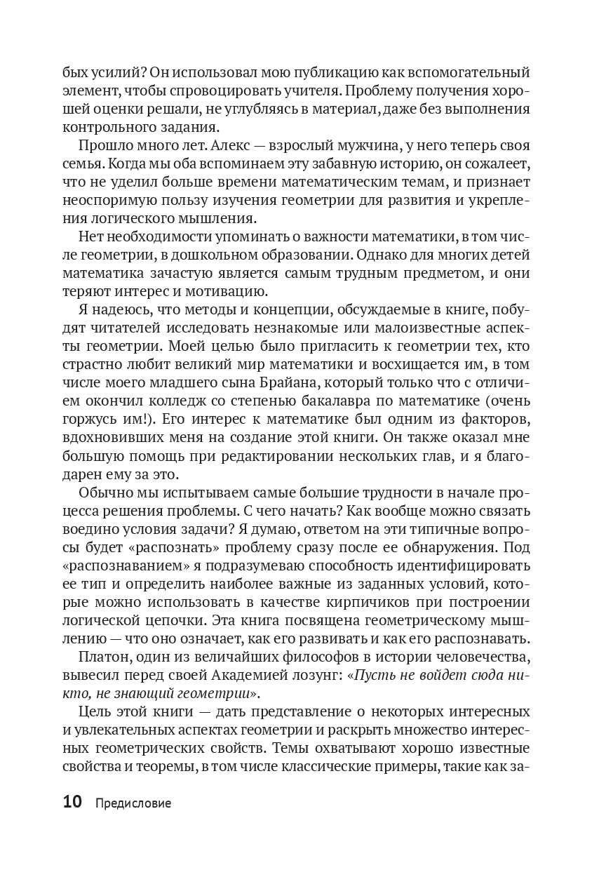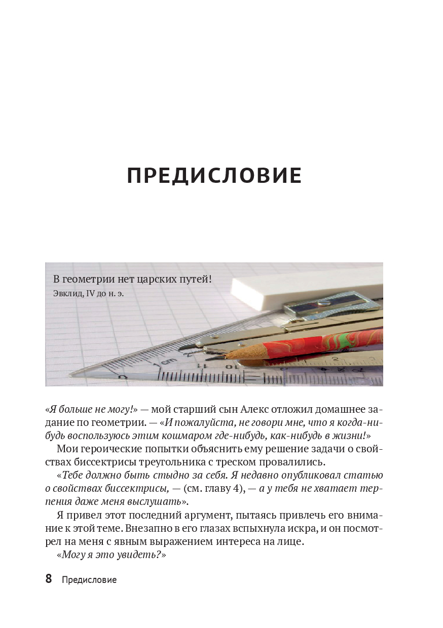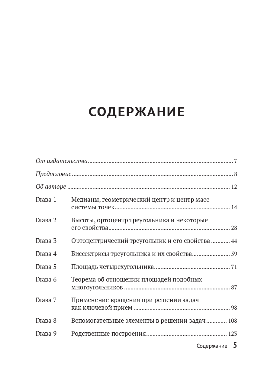 Книга рассказывает о наиболее увлекательных аспектах геометрии и раскрывает множество интересных геометрических закономерностей. Несмотря на разнообразие представленных задач, их решения не выходят за рамки базовых знаний, охватывающих учебную программу по геометрии средней школы.