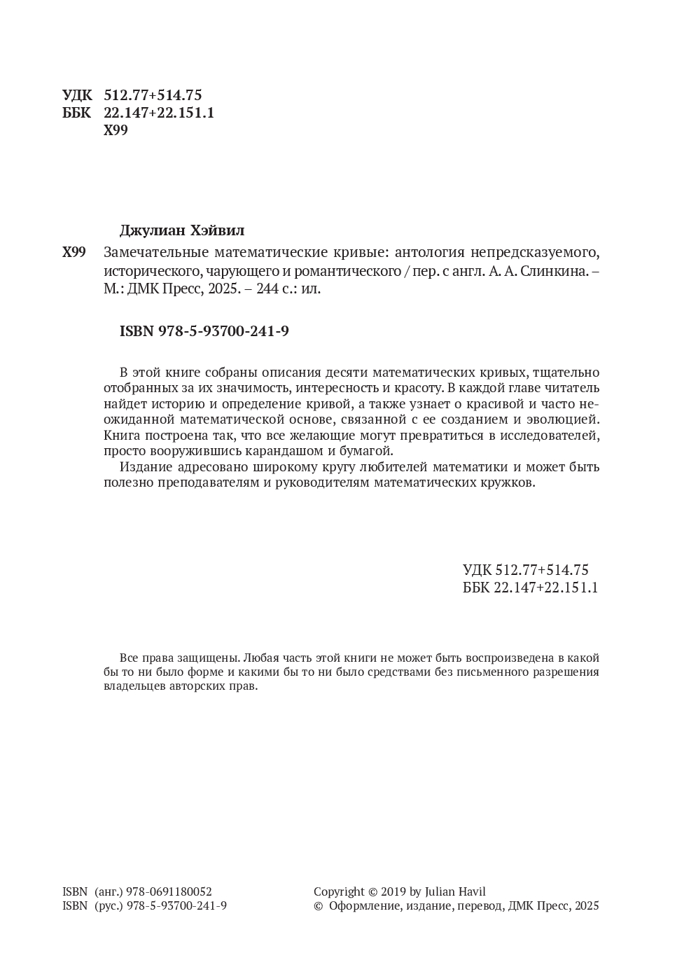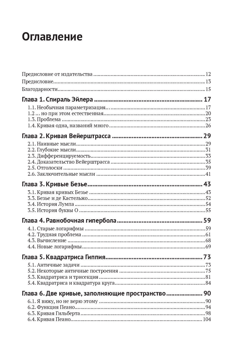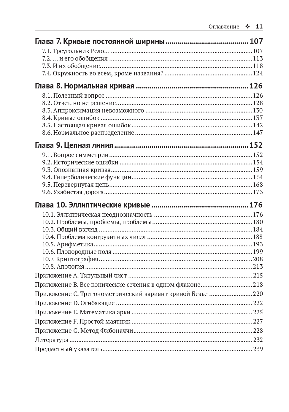 В этой книге собраны описания десяти математических кривых, тщательно отобранных за их значимость, интересность и красоту. В каждой главе читатель найдет историю и определение кривой, а также узнает о красивой и часто неожиданной математической основе, связанной с ее созданием и эволюцией.