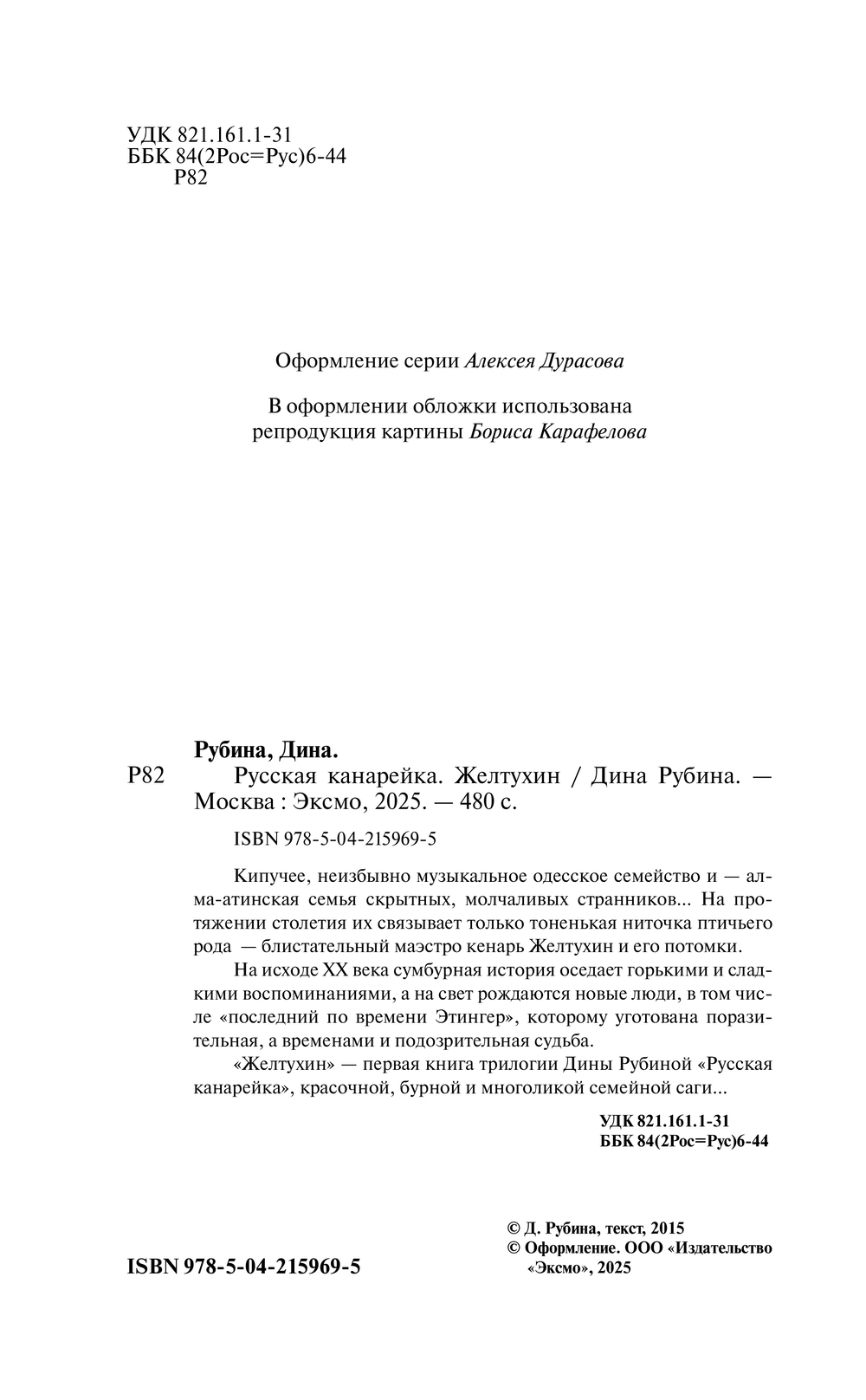 "Желтухин" – первая книга трилогии Дины Рубиной "Русская канарейка", красочной, бурной и многоликой семейной саги...