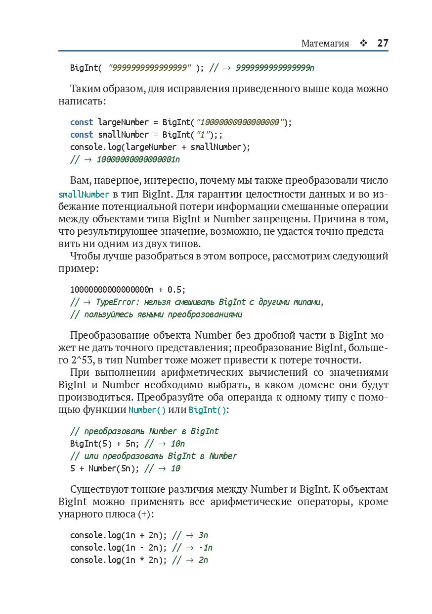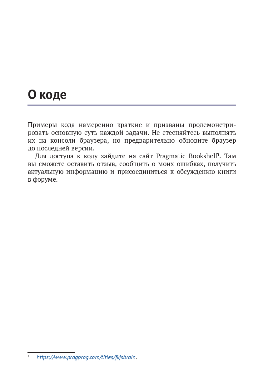 В некоторых примерах кода используются средства, недавно появившиеся в JavaScript. Поэтому важно использовать среду, поддерживающую версию ECMAScript 2020 или более позднюю. Проще всего экспериментировать с кодом в консоли браузера. Только обновите его до последней версии.