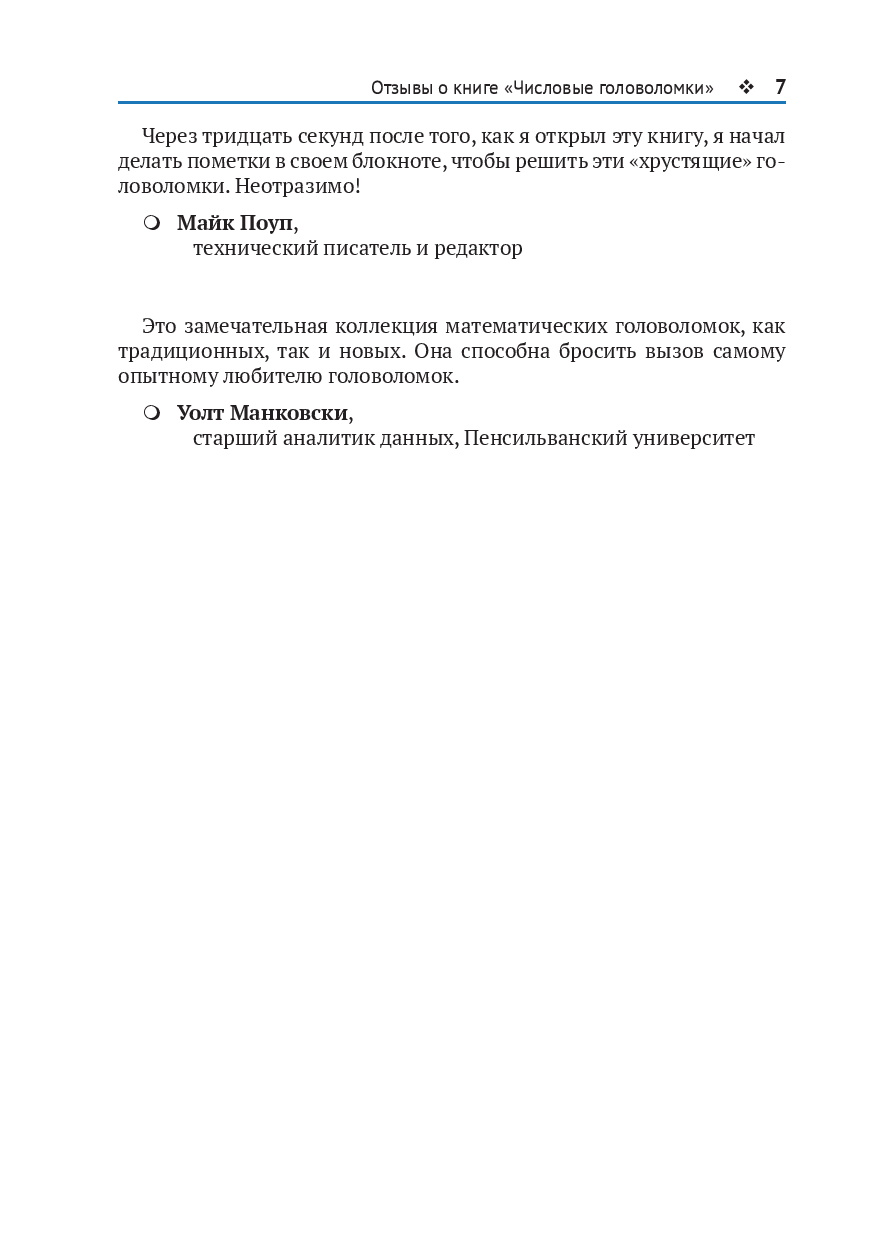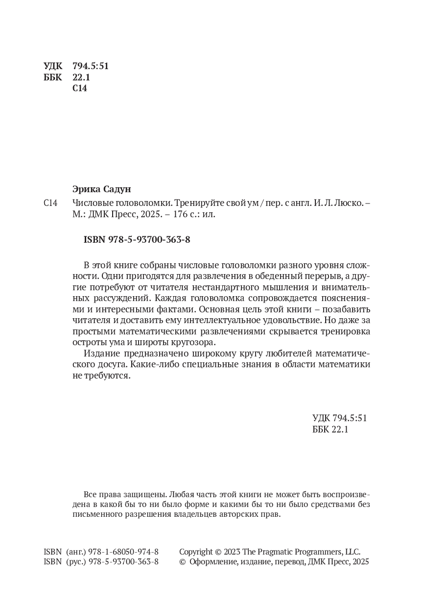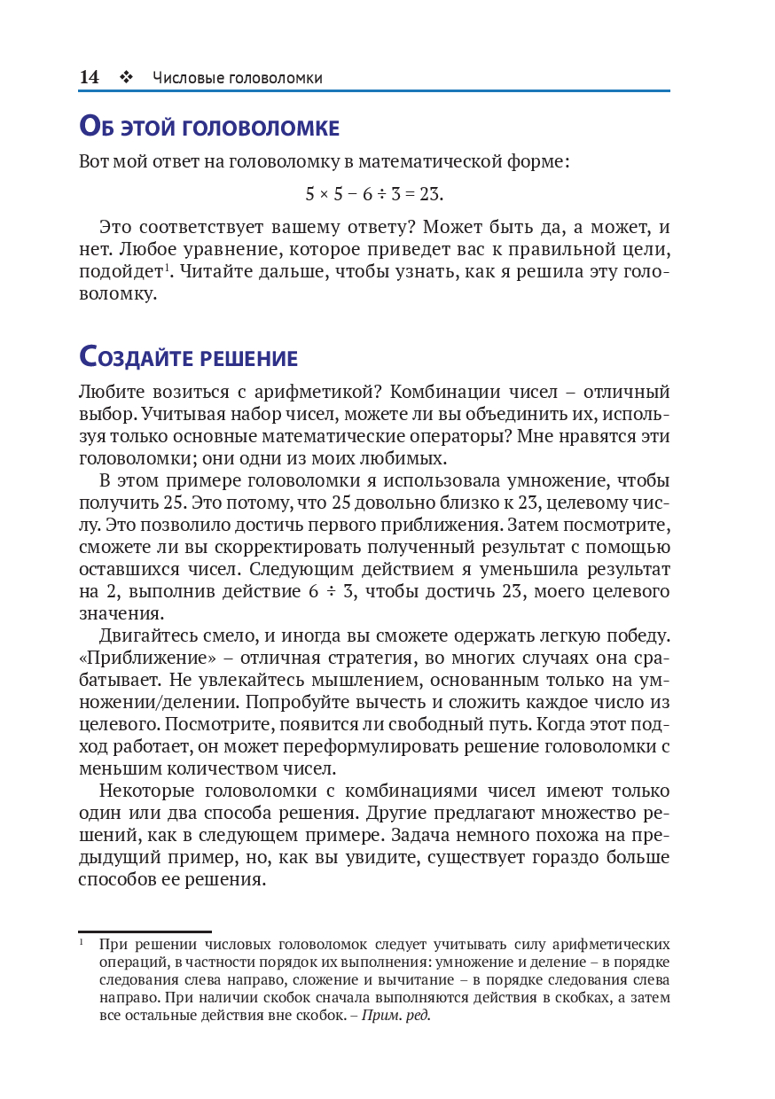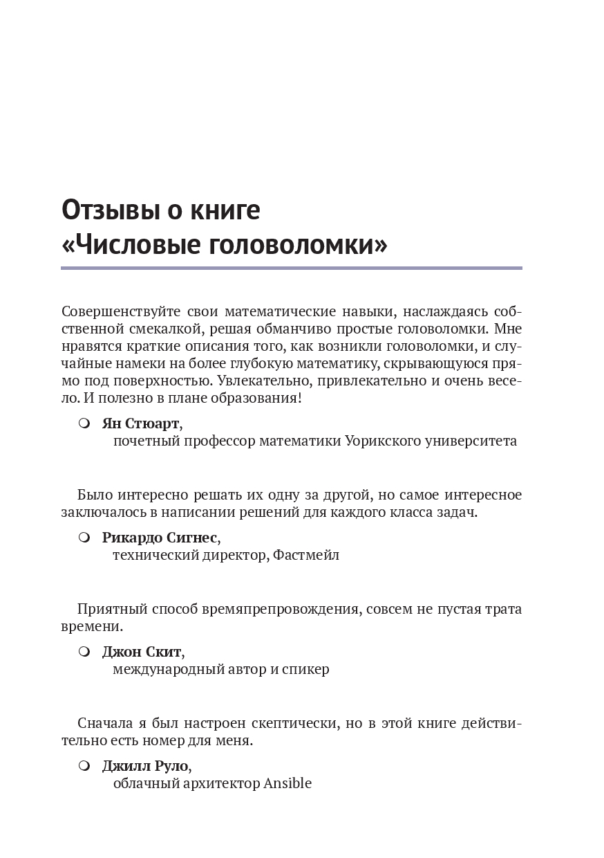 Каждая головоломка сопровождается пояснениями и интересными фактами. Основная цель этой книги – позабавить читателя и доставить ему интеллектуальное удовольствие. Но даже за простыми математическими развлечениями скрывается тренировка остроты ума и широты кругозора.
