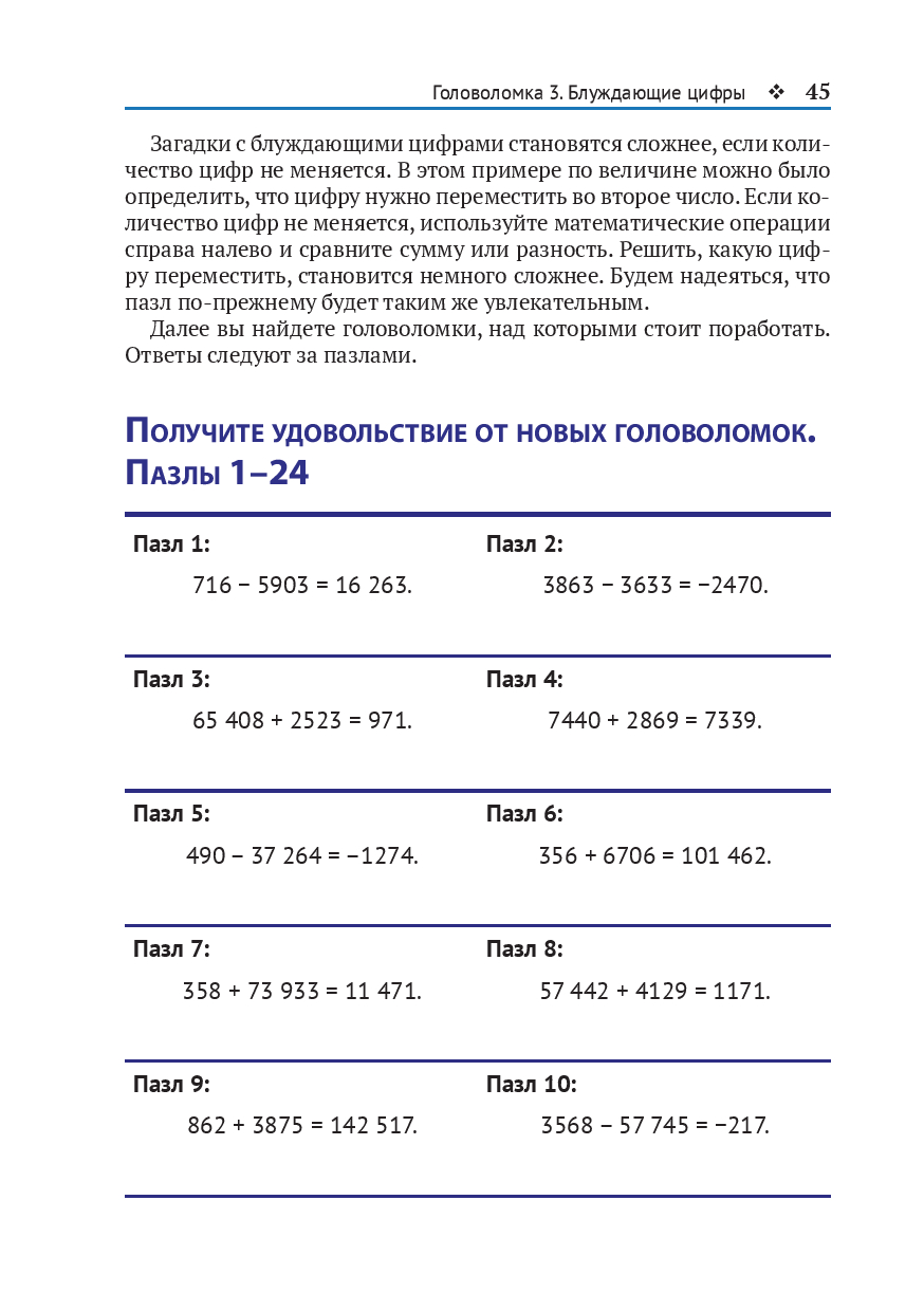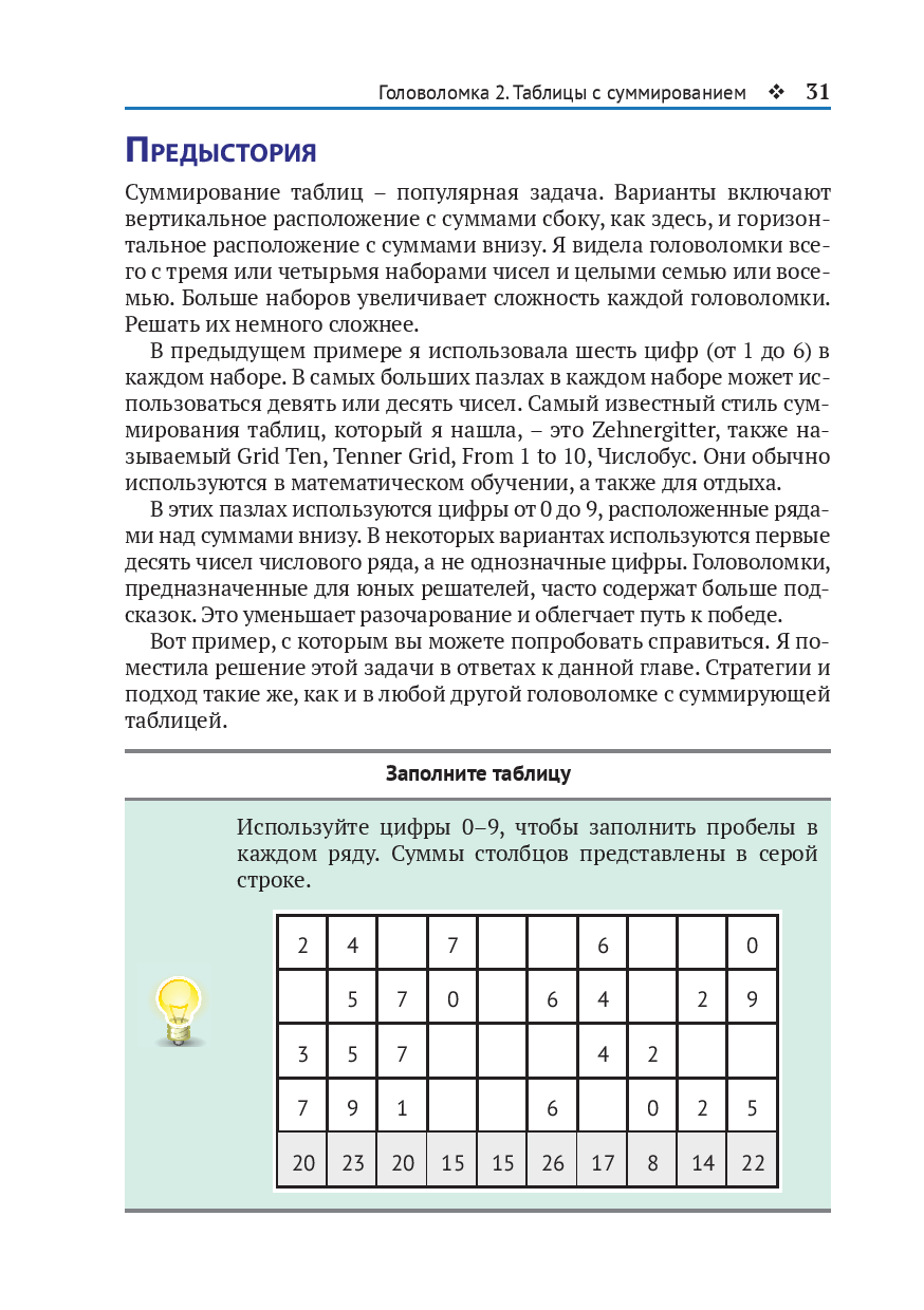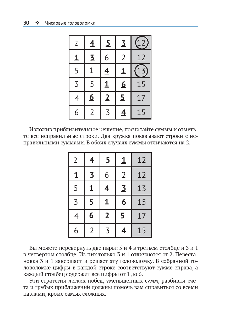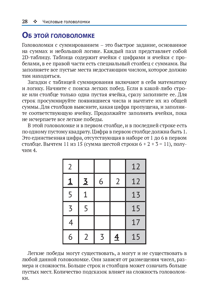 Вы можете выполнять задания в качестве разминки перед началом рабочего дня, во время перерыва на кофе или вечернего отдыха. Все, что вам нужно, это логическое мышление, немного терпения и ясный ум. Скорее берите карандаш и приступайте к решению!
