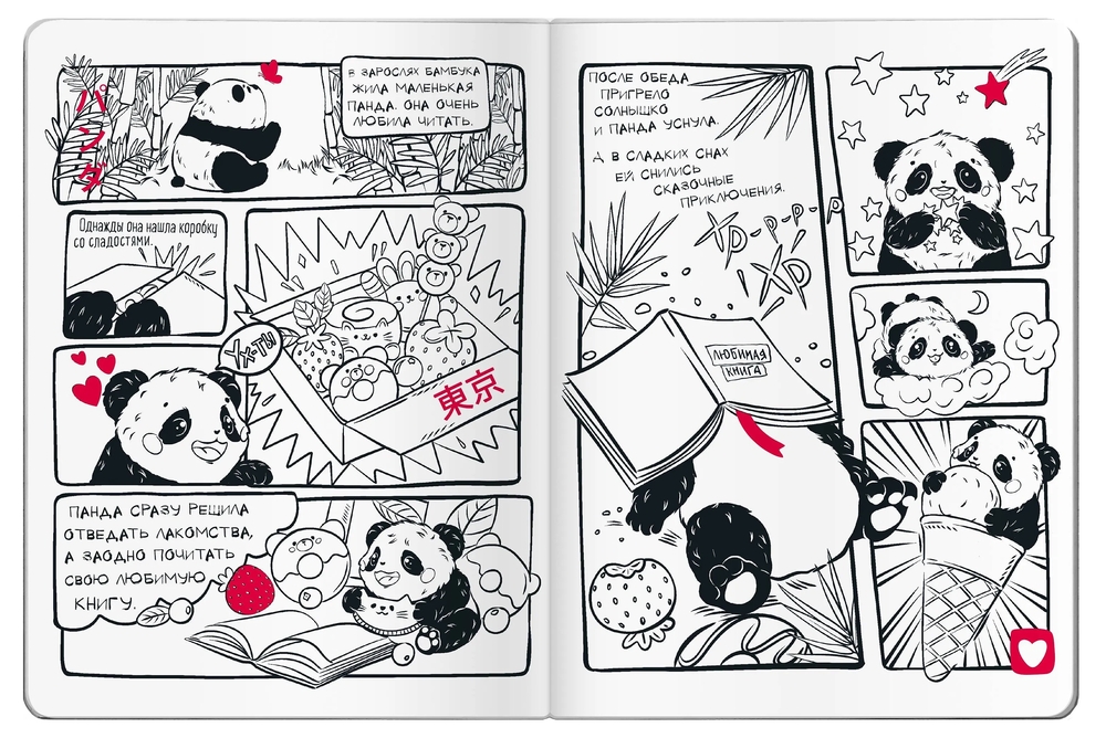 Обычные странички чередуются с увлекательными комиксами, которые можно не только прочитать, но и раскрасить.