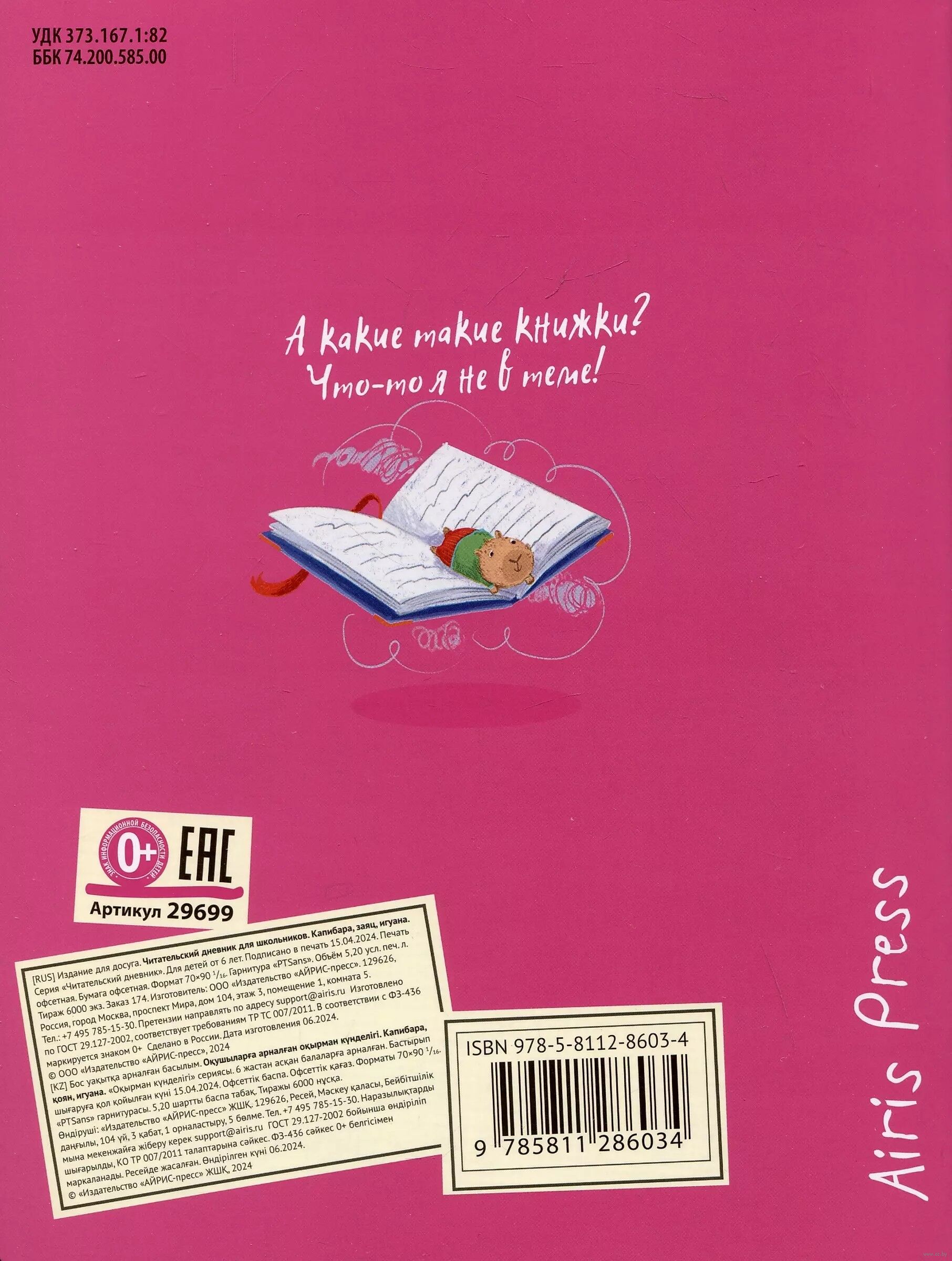 Читательский дневник для школьников. Капибара, заяц, игуана