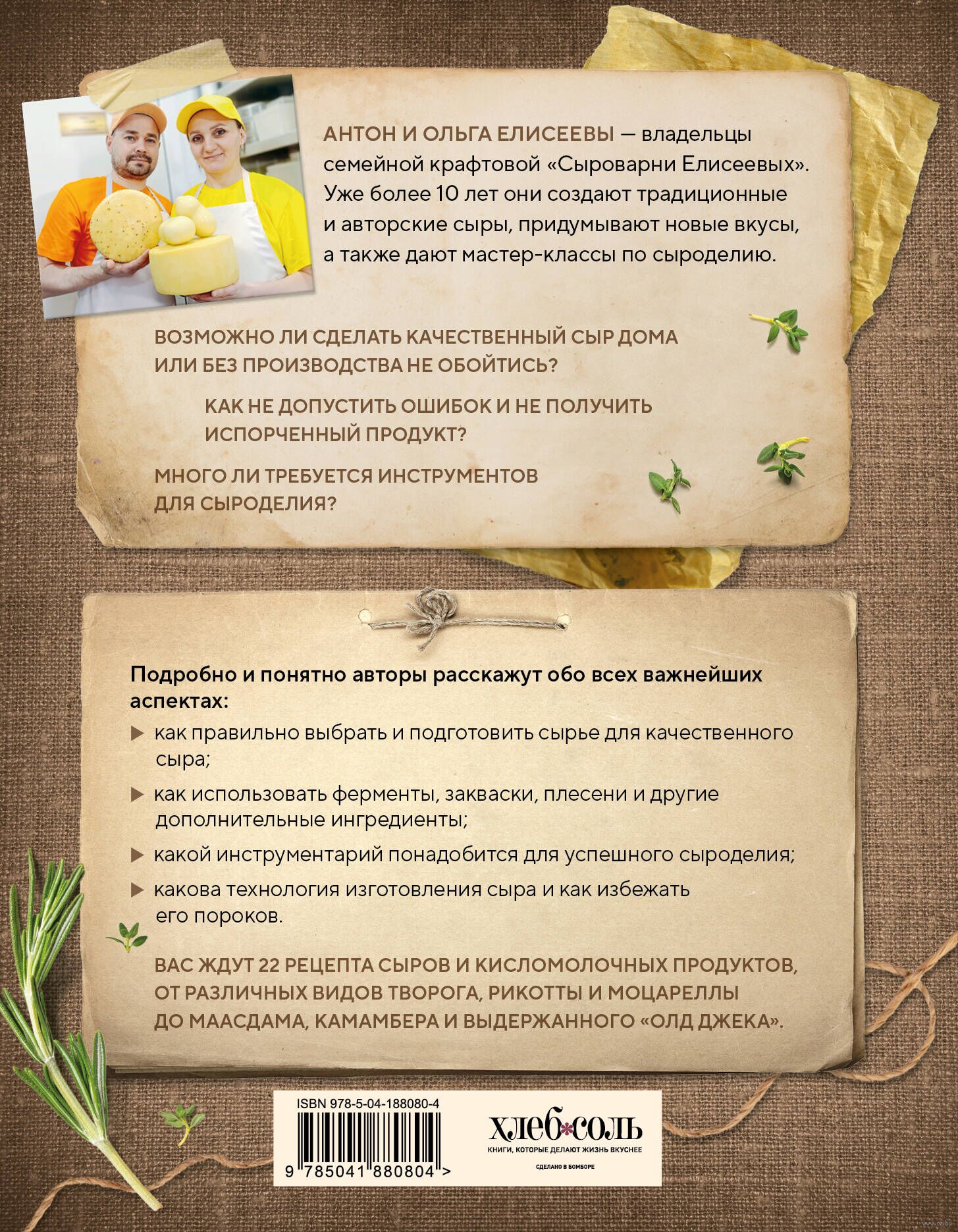 Антон и Ольга Елисеевы, владельцы семейной "Сыроварни Елисеевых", уже более 10 производят крафтовый сыр, известный не только в России, но и за ее пределами. В своей книге они подробно расскажут обо всех важных нюансах изготовления сыра и поделятся надежными рецептами, которыми пользуются сами.