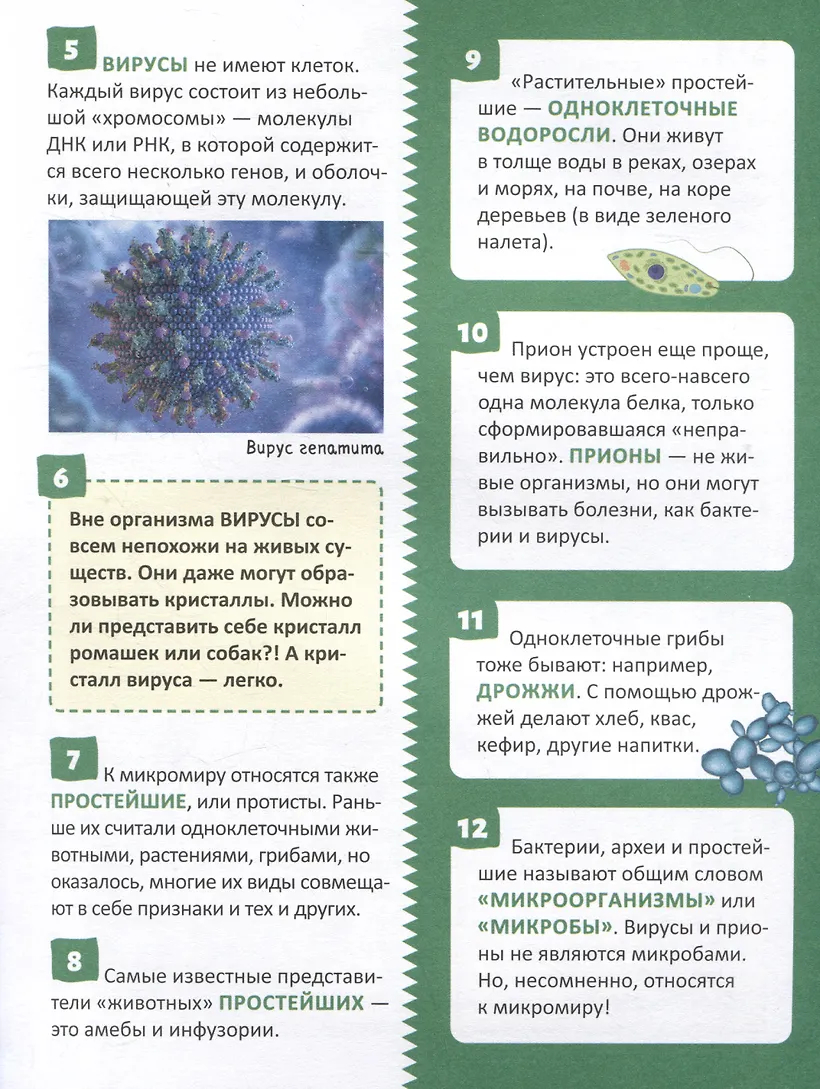 Познавательная, красочно иллюстрированная энциклопедия о загадочном мире микроскопических существ. 250 удивительных фактов о вирусах, бактериях, инфузориях, амебах и других микроорганизмах. Издание станет отличным подарком мальчику и девочке, и надежным помощником в учебе.