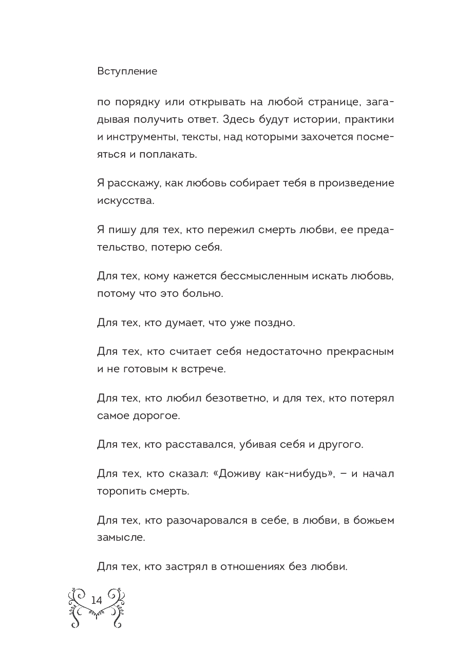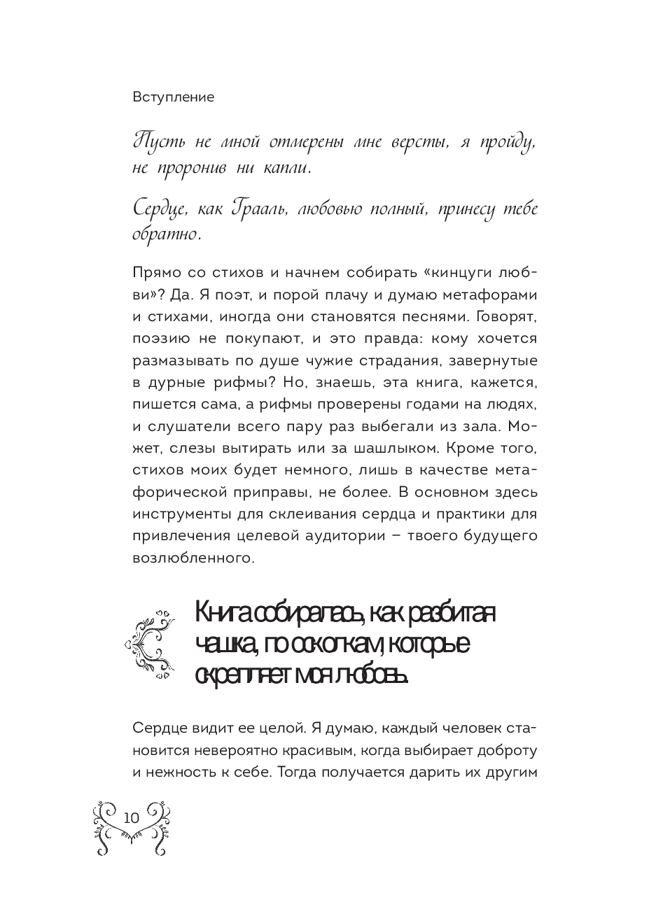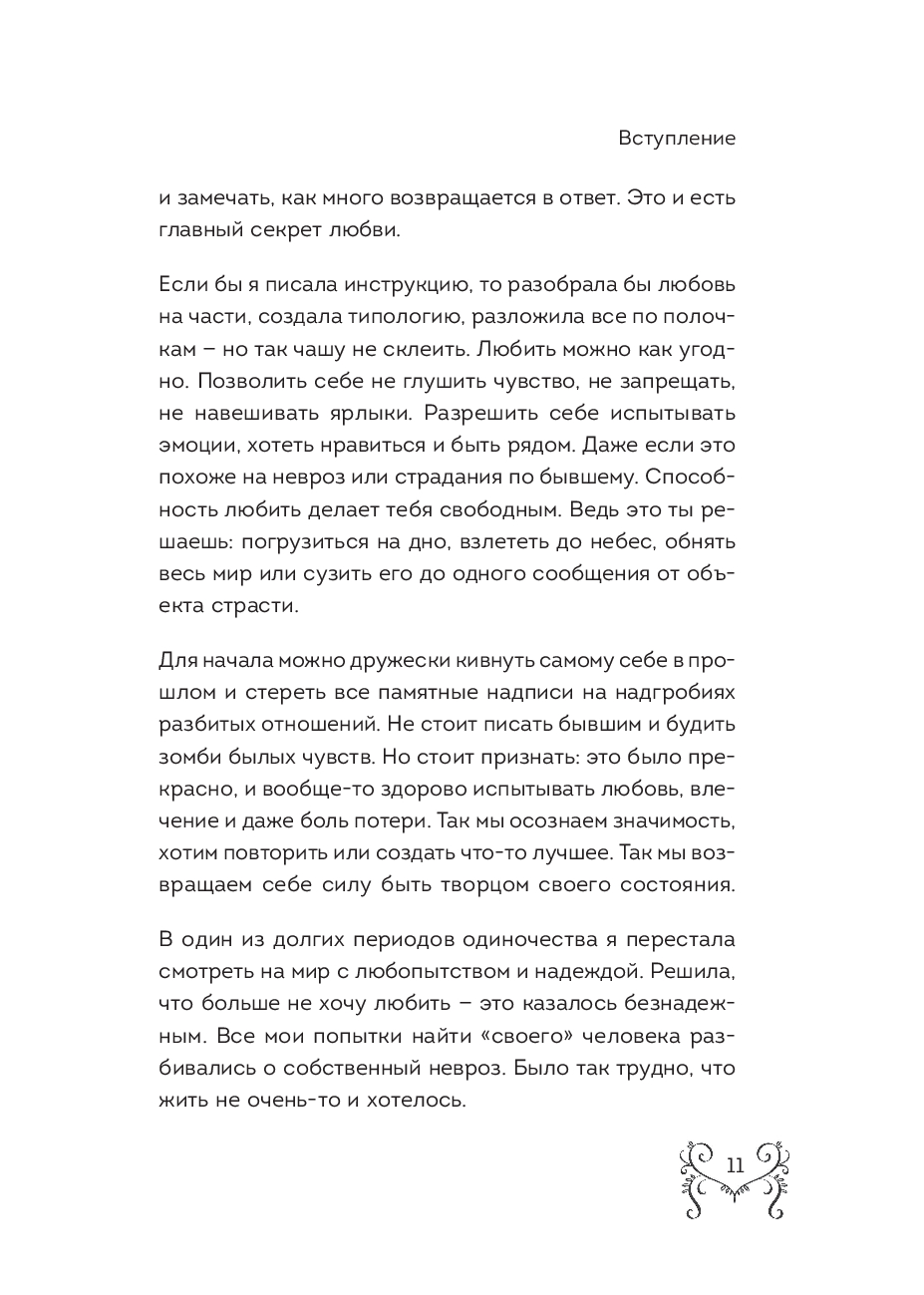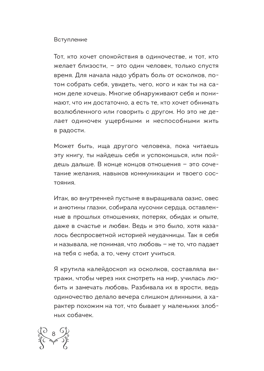 Светлана Патрушева рассказывает, как настроить способность любить и быть любимой, пережить расставание, преодолеть деструктивные любовные сценарии и понять, что любовь к партнеру начинается с любви к себе. В книге нет привычных глав, а есть "кусочки", которые собираются во что-то прекрасное и целое. Склеить сердце помогут авторские практики и инструменты, а также реальные истории, над которыми захочется посмеяться или поплакать.