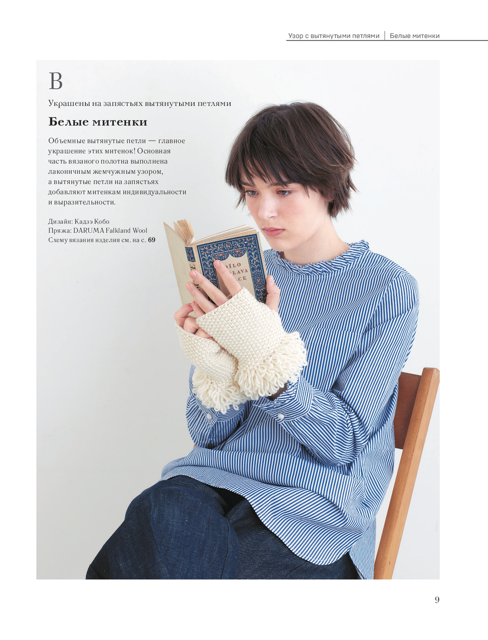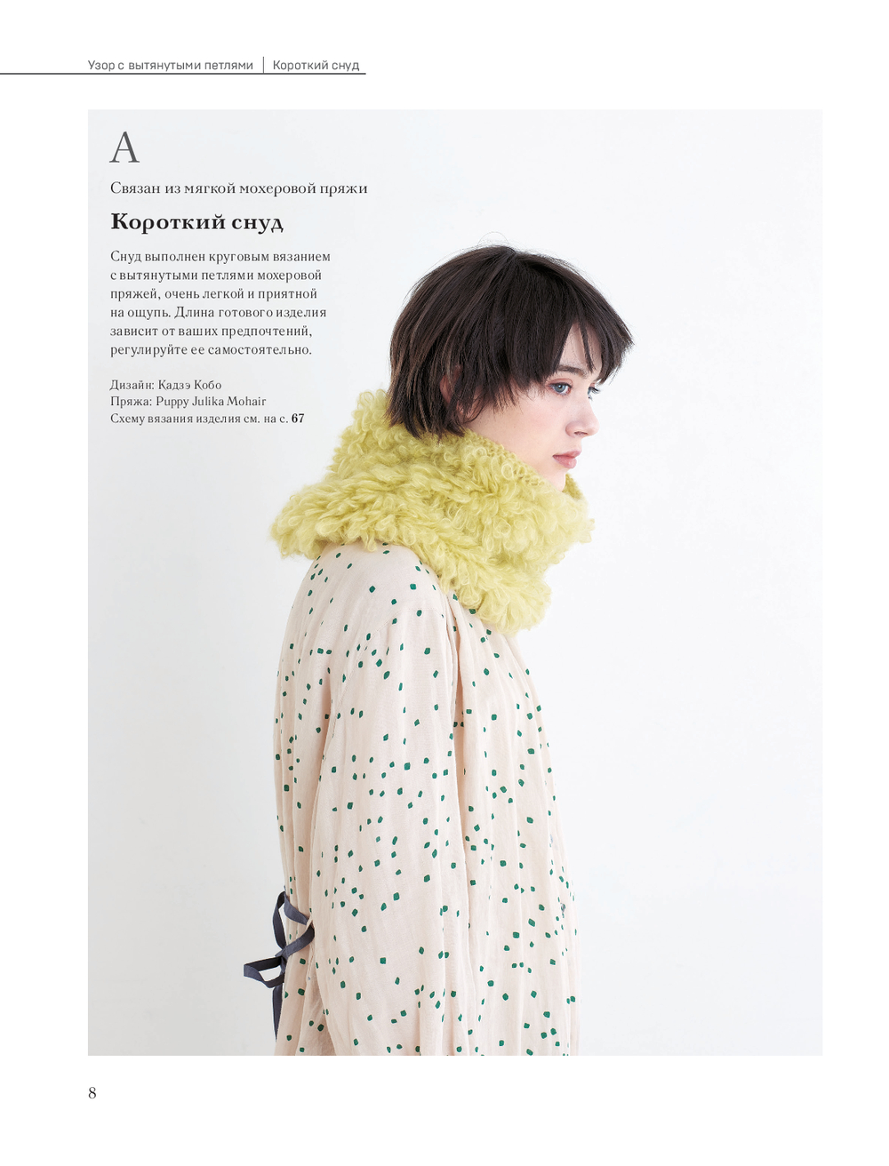 А чтобы вы лучше представляли себе, как эту красоту применить на практике, японские мастера предлагают связать множество изделий для повседневного использования: шапки, снуды, митенки, шали и многое другое.
