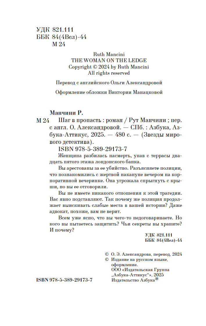 Вы арестованы за ее убийство. Разъясняете полиции, что познакомились с жертвой накануне вечером на корпоративной вечеринке. Она угрожала спрыгнуть с крыши, но вы ее отговорили.
