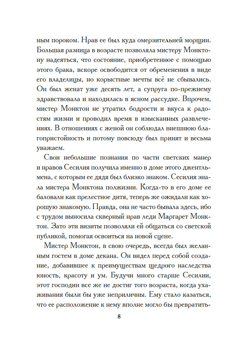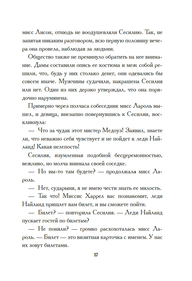 Англия, 1779 год. Сесилия Беверли унаследует богатства дяди с одним условием: будущий муж должен взять ее фамилию. А пока дядя назначил опекунов, которые будут охранять наследство до совершеннолетия девушки. Но когда Сесилия переезжает из деревни в лондонский дом одного из опекунов, красивую, умную и богатую девушку немедленно окружают потенциальные женихи, и она оказывается в водовороте страстей и любовных интриг. Сесилия влюбляется в мужчину из знатной семьи, но их счастью препятствуют его родители, гордящиеся своим происхождением и древностью рода. Что делать влюбленным – навсегда отказаться друг от друга или пойти против традиций и предрассудков?