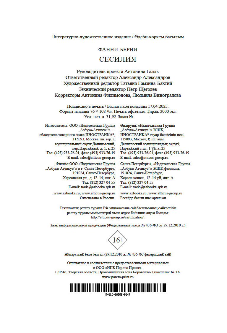 | Изготовитель | ООО "Издательство "Иностранка". 109017, РФ, г. Москва, ул. Пятницкая, 41 |