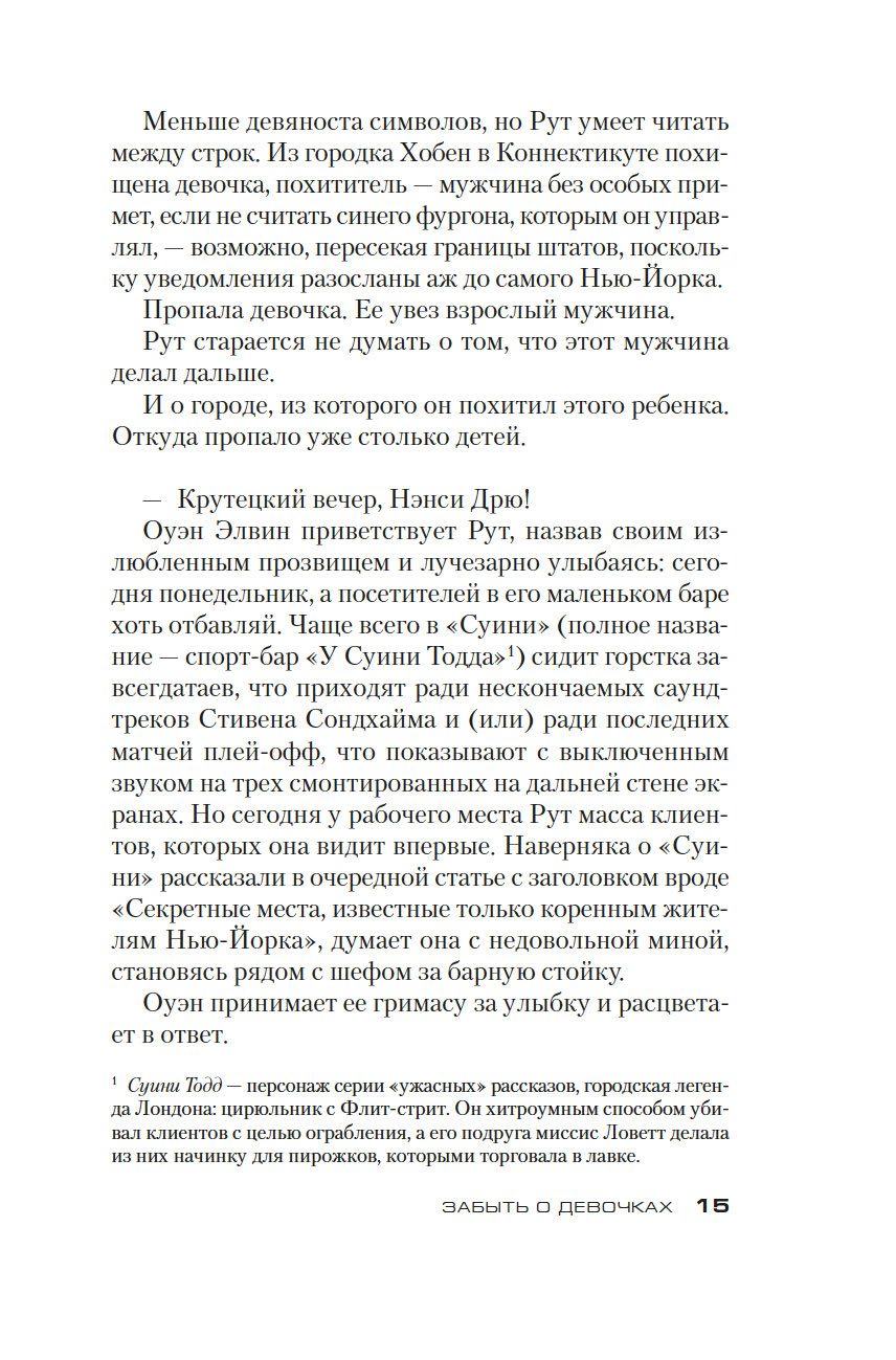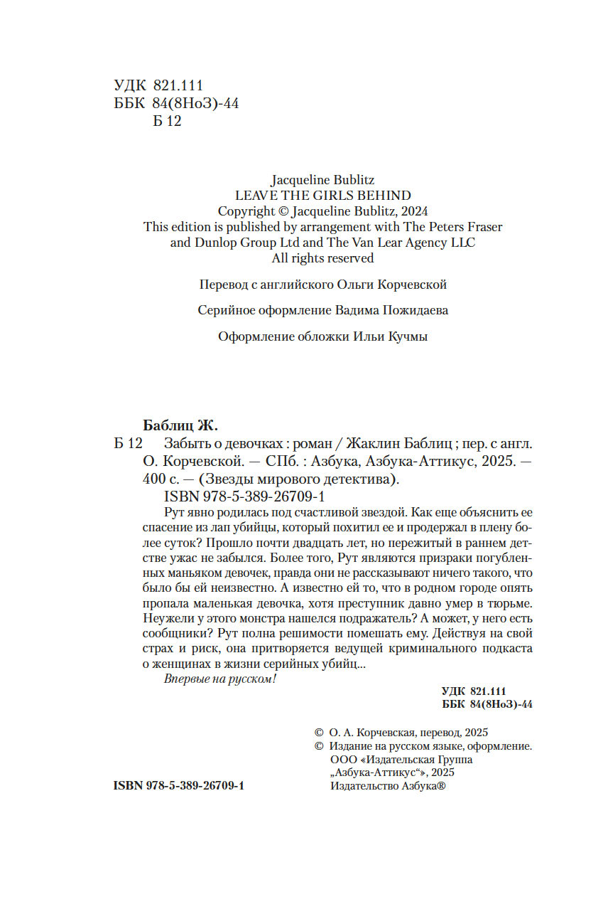 Рут явно родилась под счастливой звездой. Как еще объяснить ее спасение из лап убийцы, который похитил ее и продержал в плену более суток? Прошло почти двадцать лет, но пережитый в раннем детстве ужас не забылся. Более того, Рут являются призраки погубленных маньяком девочек, правда они не рассказывают ничего такого, что было бы ей неизвестно. А известно ей то, что в родном городе опять пропала маленькая девочка, хотя преступник давно умер в тюрьме. Неужели у этого монстра нашелся подражатель? А может, у него есть сообщники? Рут полна решимости помешать ему. Действуя на свой страх и риск, она притворяется ведущей криминального подкаста о женщинах в жизни серийных убийц...