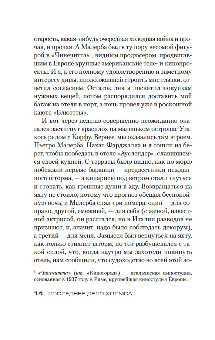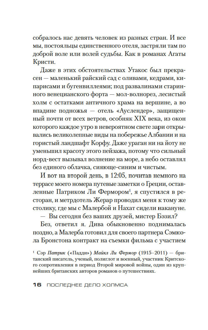 Июнь 1960 года. Тринадцать человек, отель на маленьком греческом острове, внезапно обнаруженный труп одной из постоялиц. Пока вокруг бушует шторм, никто не уплывет с острова и никто на остров не приплывет, в том числе полиция. Однако волею судьбы среди тех, кто застрял на острове, оказывается Хопалонг Бэзил – кинозвезда золотого века Голливуда, сыгравший Шерлока Холмса в пятнадцати фильмах. А если ты годами играл знаменитого лондонского сыщика на большом экране и знаешь все рассказы Конан Дойла о нем наизусть, не так важно, что ты уже немолод, твой расцвет уже, пожалуй, миновал, на смену тебе пришли новые звезды, а на смену Шерлоку Холмсу – прожженные антигерои нуаров. Если случится убийство, кому его расследовать, как не тебе?