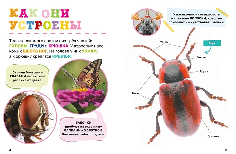 Красочно иллюстрированная энциклопедия поможет ребенку от 3 до 5 лет познакомиться с окружающим миром, развить мышление и кругозор. Издание содержит познавательные факты о самых разных насекомых, множество реалистичных фотографий и увлекательные задания на внимание и логику.