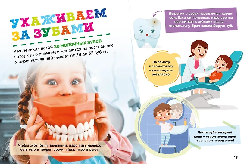 Красочно иллюстрированная энциклопедия познакомит ребенка с понятием гигиены и распорядком дня, подскажет, как заботиться о здоровье и как оказать первую помощь. Книга содержит познавательные факты об окружающем мире, множество реалистичных фотографий и увлекательных заданий на внимание и логику.