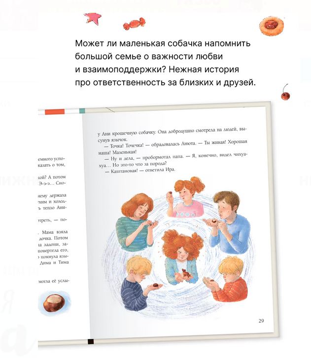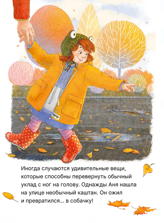 Иногда случаются удивительные вещи, которые способны перевернуть обычный уклад с ног на голову. Однажды Аня нашла на улице необычный каштан. Он ожил и превратился... в собачку! Однако показывать нового питомца родным девочка не спешила: хотела, чтобы собачка принадлежала лишь ей одной. Анюта спрятала малышку, и случилась беда... Сумеет ли девочка все исправить? О каких важных вещах собачка напомнит всей семье?