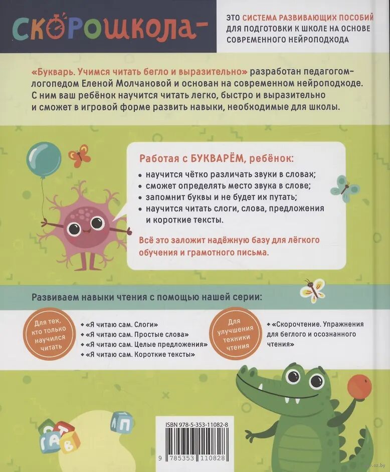 "Букварь. Учимся читать бегло и выразительно" – пособие, разработанное по эффективной методике логопеда Елены Молчановой. С его помощью ребенок не только выучит буквы, но и научится читать бегло и чисто, правильно расставляя смысловые ударения. Кроме того, интерактивные задания научат его различать звуки, похожие по звучанию, не путать похожие словоформы, что заложит основу для грамотного письма. Значок в виде звездочки указывает на текст, который читает ребенок.