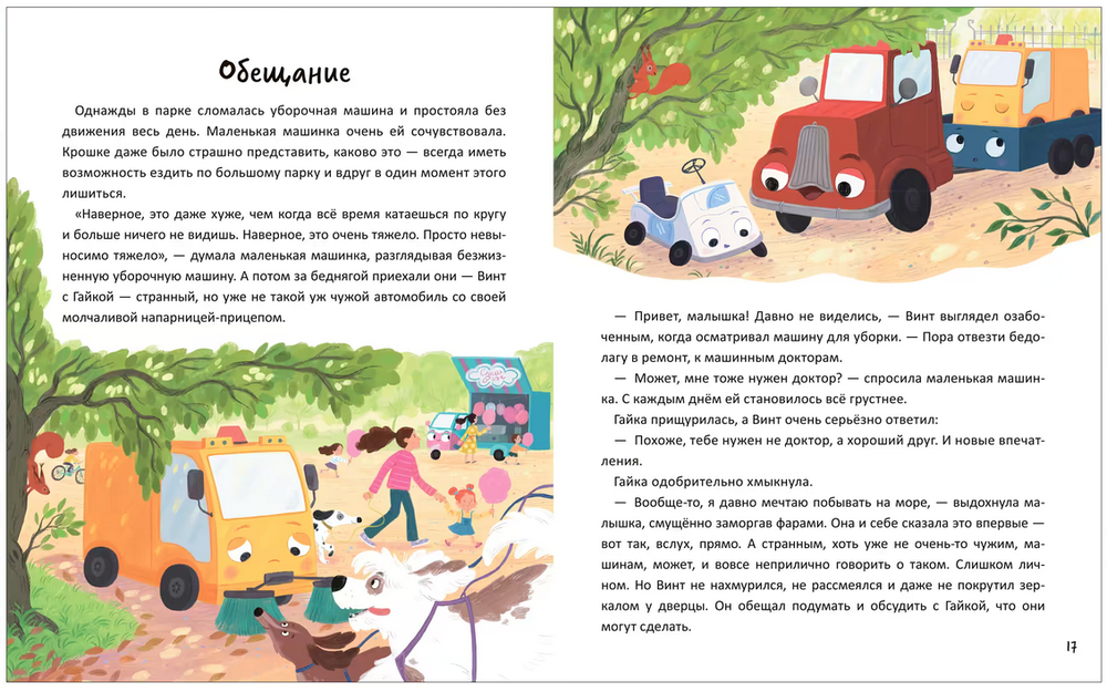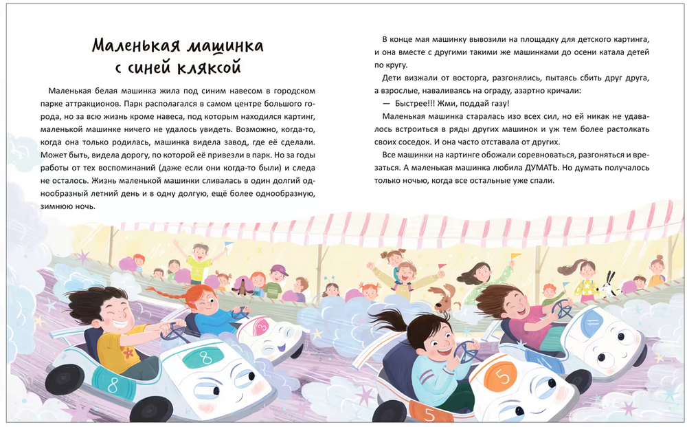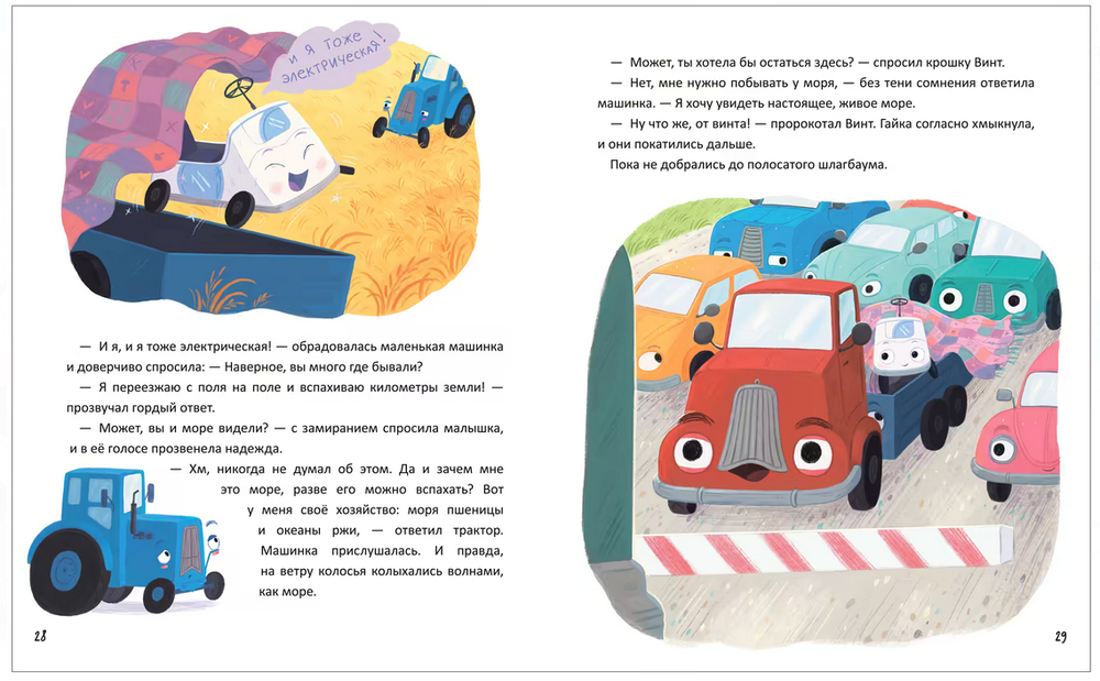 Маленькая белая машинка каждый день весной, летом и осенью катает ребятишек на детском картинге в городском парке. А по ночам мечтает когда-нибудь увидеть настоящее, а не картонное море. Однажды она знакомится с тягачом с прицепом и понимает, что ее мечта может стать реальностью. Путешествие начинается! Вдохновляющая история о том, что даже самую несбыточную мечту можно воплотить в жизнь, если очень сильно в нее верить.
