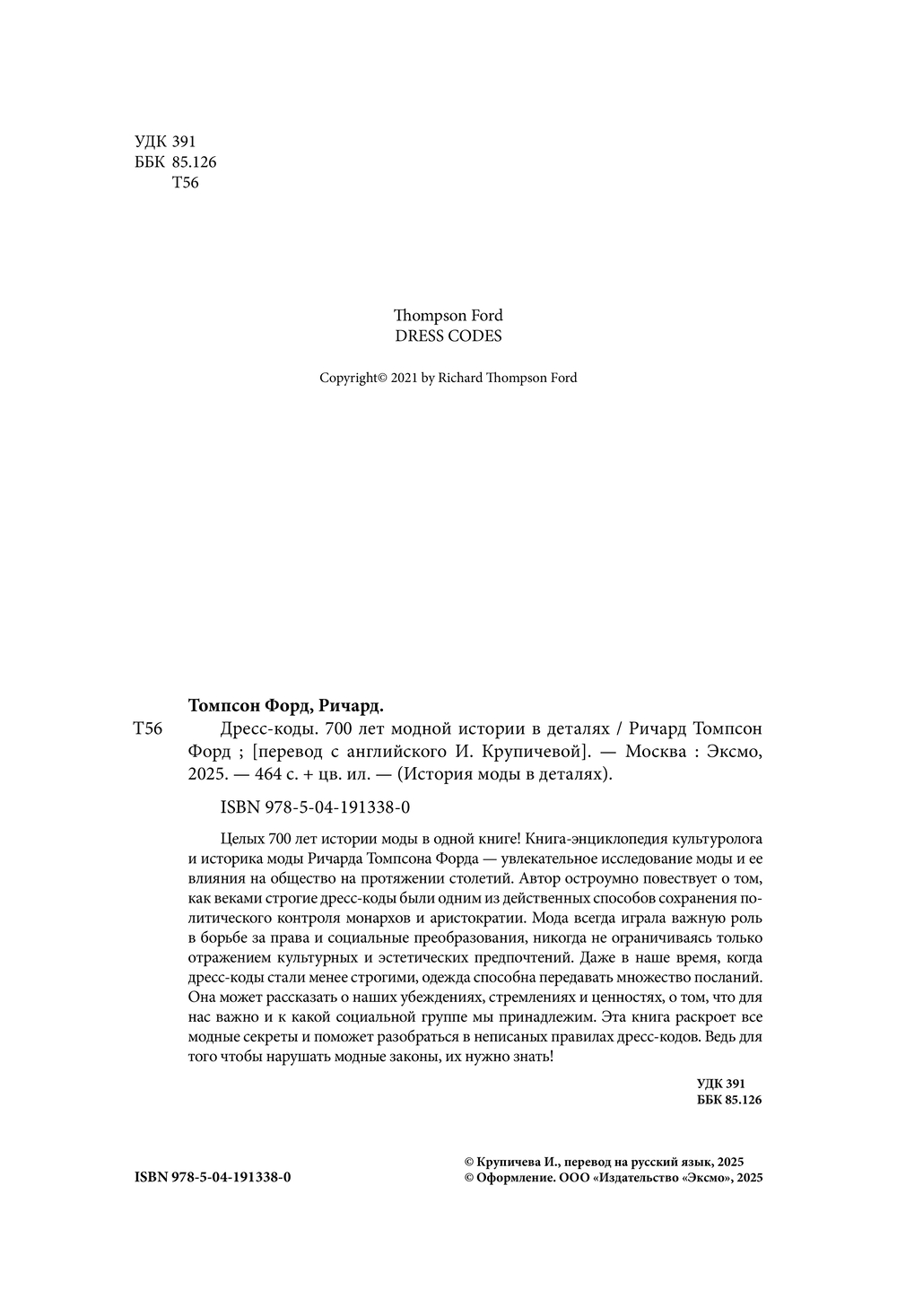 Целых 700 лет истории моды в одной книге! Книга-энциклопедия культуролога и историка мода Ричарда Томпсона Форда – увлекательное исследование моды и ее влияния на общество на протяжении столетий. Автор остроумно повествует о том, как веками строгие дресс-коды были одним из действенных способов сохранения политического контроля монархов и аристократии.