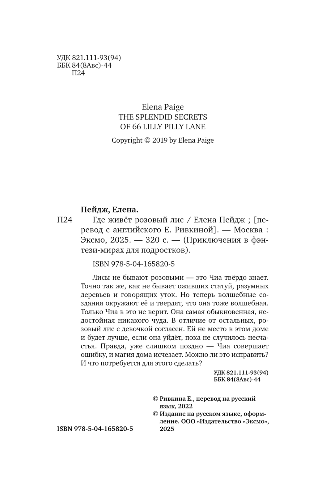 Лисы не бывают розовыми – это Чиа твёрдо знает. Точно так же, как не бывает оживших статуй, разумных деревьев и говорящих уток. Но теперь волшебные создания окружают её и твердят, что она тоже волшебная. Только Чиа в это не верит. Она самая обыкновенная, недостойная никакого чуда. В отличие от остальных розовый лис с девочкой согласен. Ей не место в этом доме и будет лучше, если она уйдёт, пока не случилось несчастья. Правда, уже слишком поздно – Чиа совершает ошибку, и магия дома исчезает. Можно ли это исправить? И что потребуется для этого сделать?
