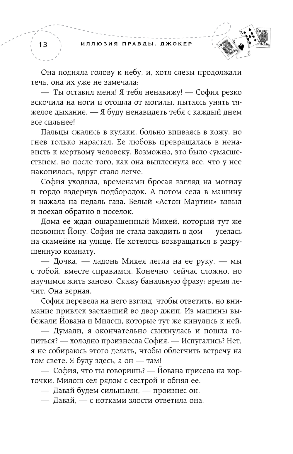 София должна снова стать сильной. Теперь все будет по ее правилам. Если, конечно, ей не помешает некто, кто скрывает свое лицо. Тот, кого она никак не ожидала увидеть. Тот, кто срывает все ее планы, и тот, кто ведет свою игру. Но кто в этой колоде окажется Джокером?