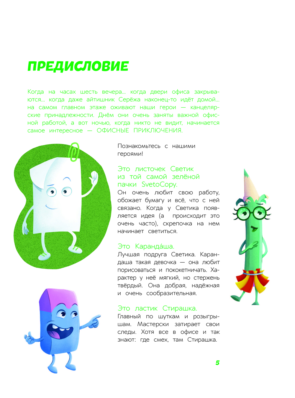 Когда на часах шесть вечера… когда двери офиса закрываются… когда даже айтишник Серёжа наконец-то отправляется домой… на самом главном этаже оживают герои – канцелярские принадлежности. Днём они заняты важными офисными делами, а вот ночью, когда никто не видит, начинается самое интересное – офисные приключения.