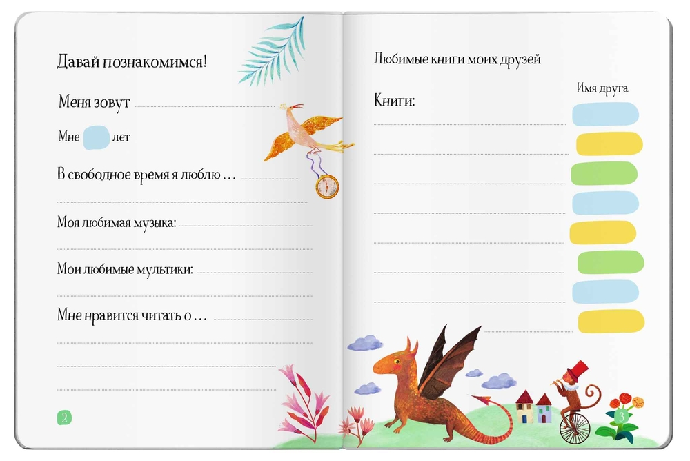 Этот читательский дневник хочется заполнять снова и снова. Он поможет ребёнку ещё больше подружиться с книгами. На его страничках ребёнок будет рассказывать о прочитанных книгах, вспоминать главных героев, делиться своими впечатлениями.