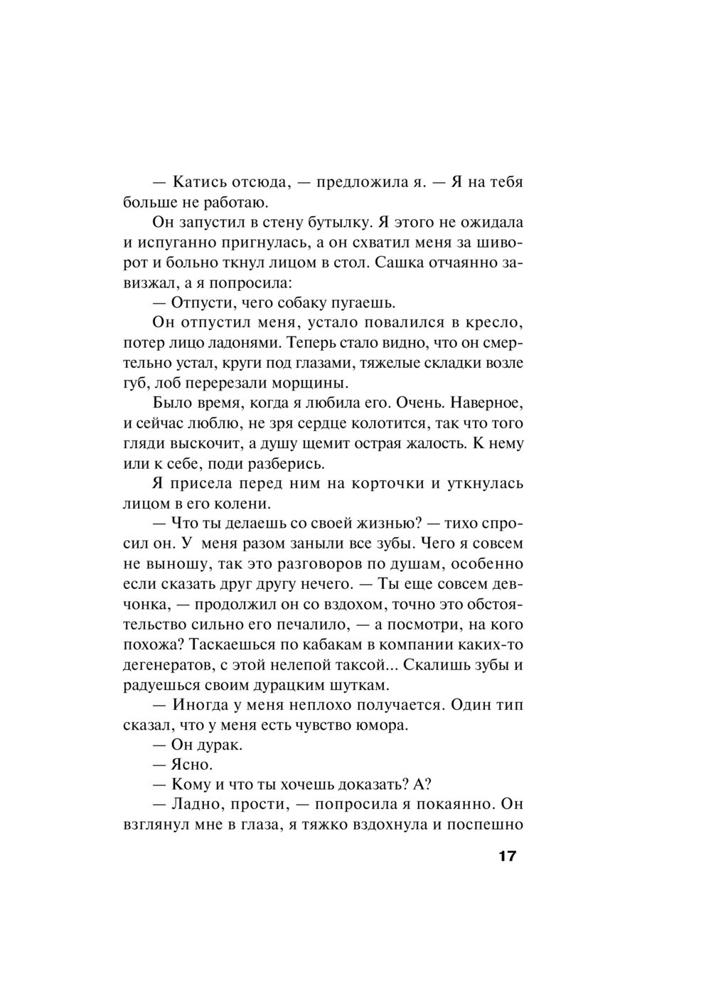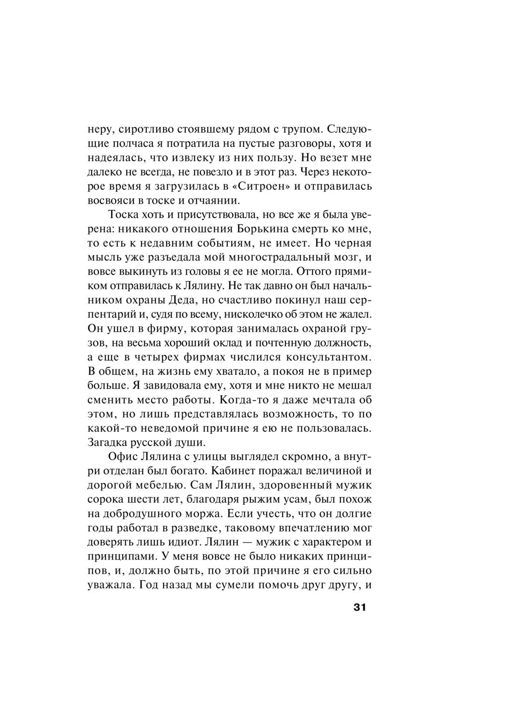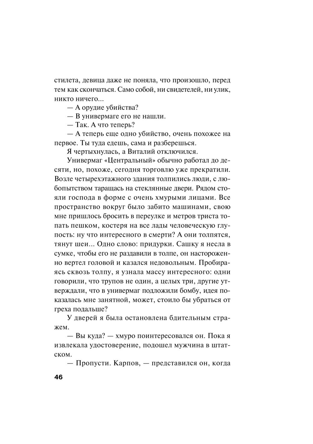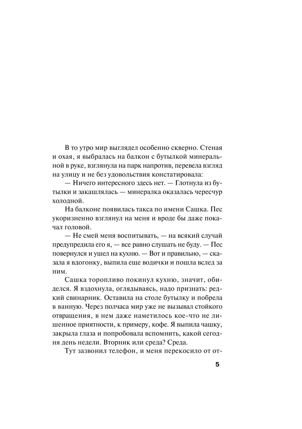 Три женщины убиты одна за одной, и все в примерочной кабинке универмага. Ох, как не хотелось Ольге Рязанцевой, референту городской администрации, влезать в это дело, но пришлось. А тут еще два трупа, на этот раз – мужчины. Причем этих убрали в весьма пикантной ситуации. Ольгу, что называется, заело, она решила найти убийцу во что бы то ни стало. Как раз кстати в городе появился и человек, в честь которого Ольга назвала свою любимую таксу – Сашкой. Очень опасный парень, специалист по трудноразрешимым проблемам. Но сейчас, кажется, он не на Ольгиной стороне, уж больно взгляд у него колючий и поцелуй ледяной...