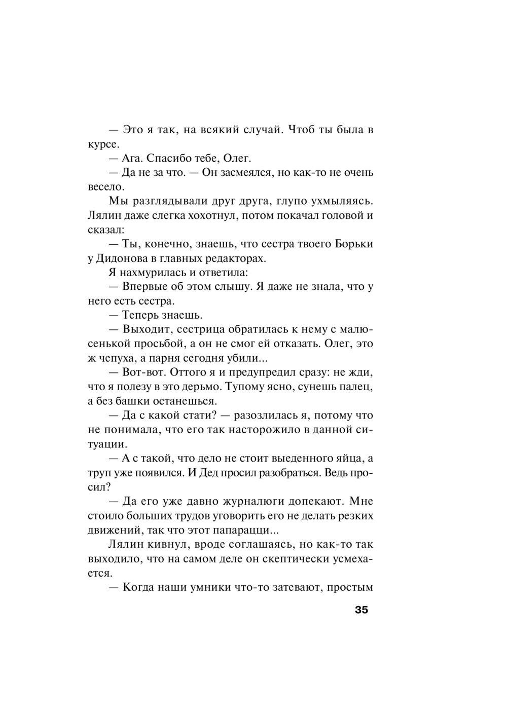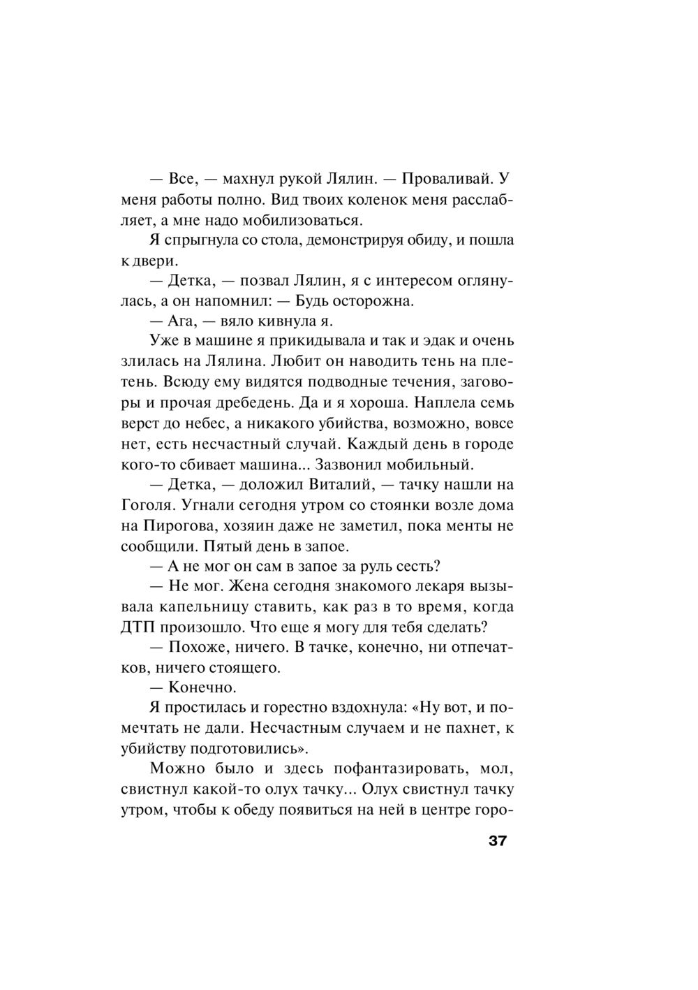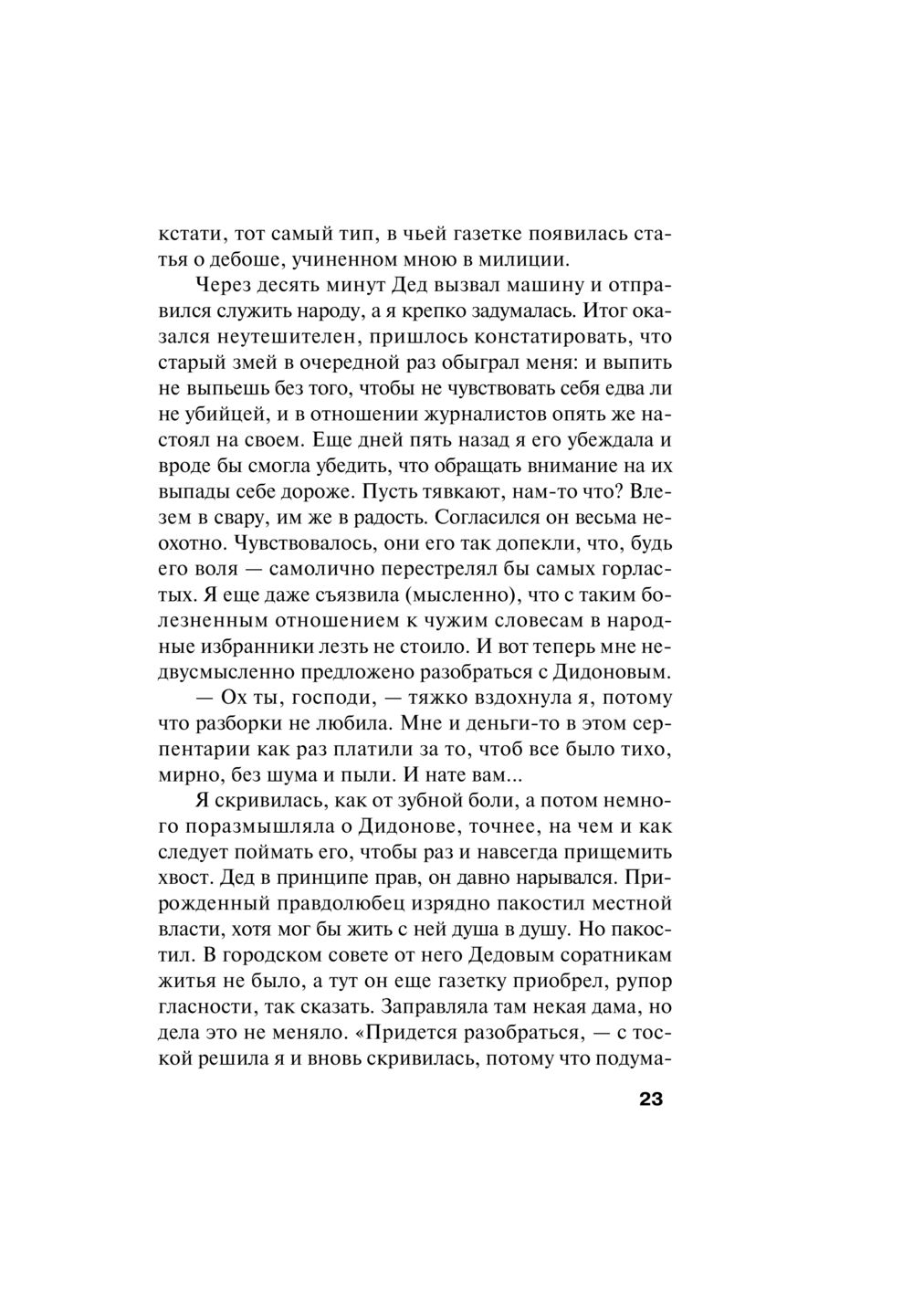 Три женщины убиты одна за одной, и все в примерочной кабинке универмага. Ох, как не хотелось Ольге Рязанцевой, референту городской администрации, влезать в это дело, но пришлось. А тут еще два трупа, на этот раз – мужчины. Причем этих убрали в весьма пикантной ситуации. Ольгу, что называется, заело, она решила найти убийцу во что бы то ни стало. Как раз кстати в городе появился и человек, в честь которого Ольга назвала свою любимую таксу – Сашкой. Очень опасный парень, специалист по трудноразрешимым проблемам. Но сейчас, кажется, он не на Ольгиной стороне, уж больно взгляд у него колючий и поцелуй ледяной...