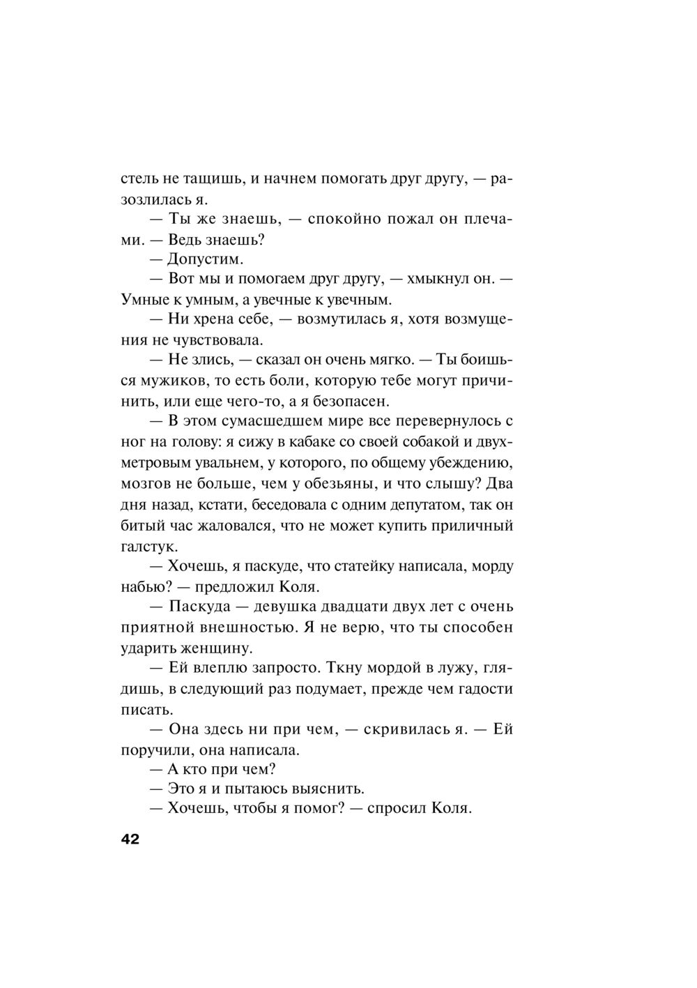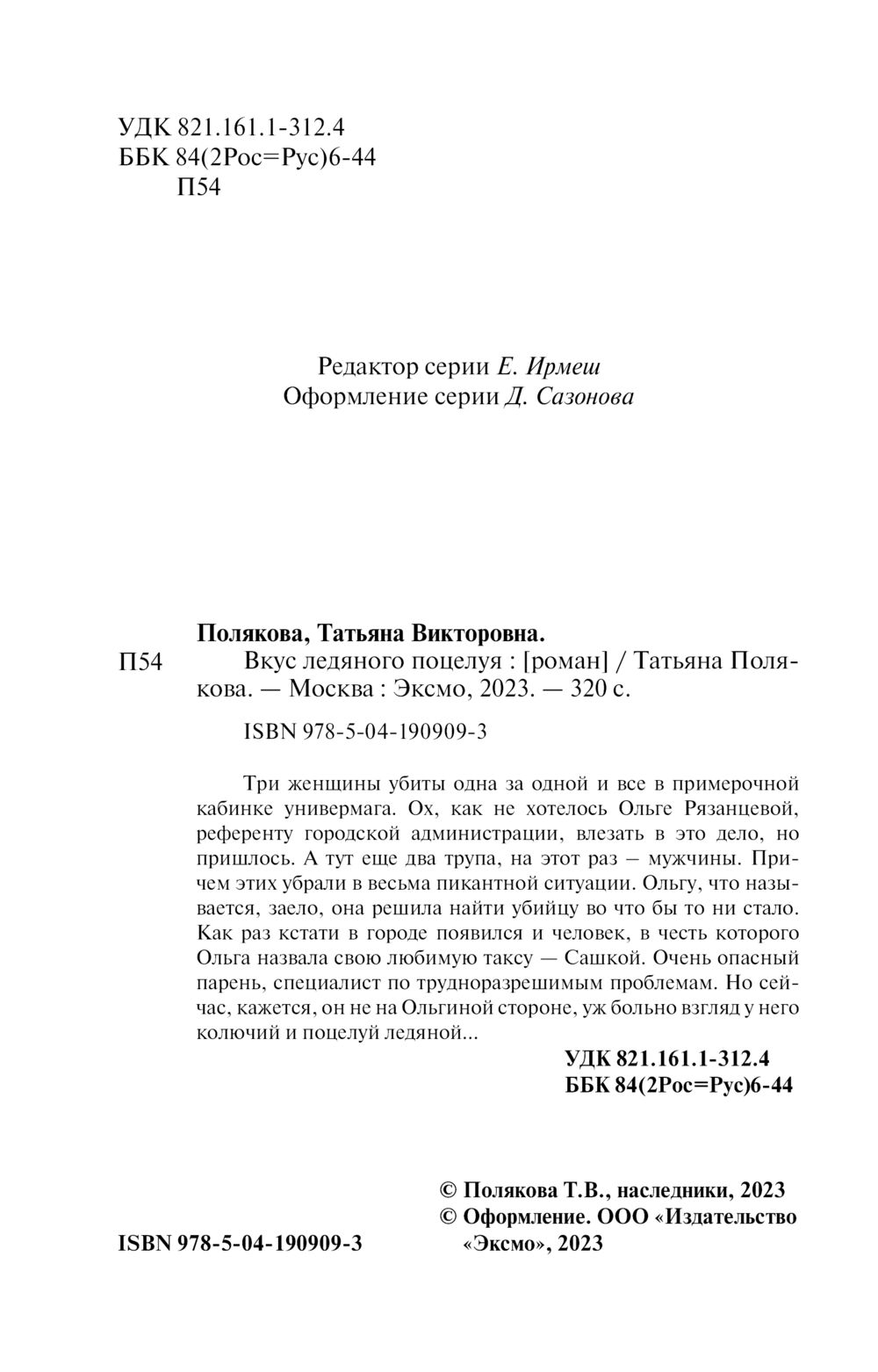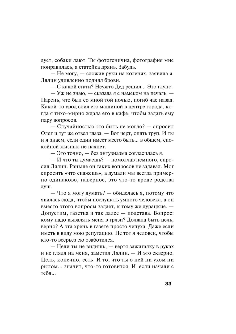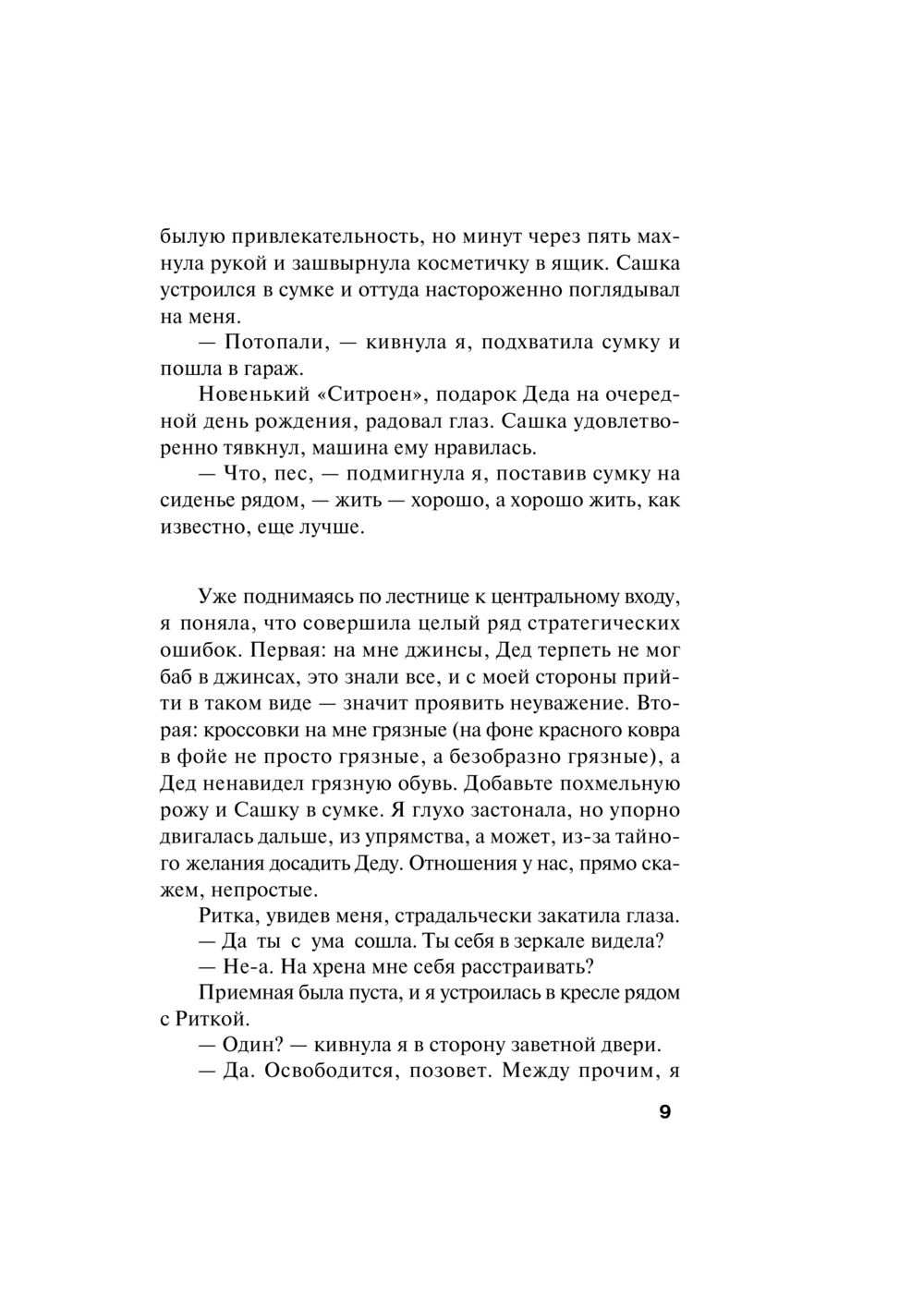 Три женщины убиты одна за одной, и все в примерочной кабинке универмага. Ох, как не хотелось Ольге Рязанцевой, референту городской администрации, влезать в это дело, но пришлось. А тут еще два трупа, на этот раз – мужчины. Причем этих убрали в весьма пикантной ситуации. Ольгу, что называется, заело, она решила найти убийцу во что бы то ни стало. Как раз кстати в городе появился и человек, в честь которого Ольга назвала свою любимую таксу – Сашкой. Очень опасный парень, специалист по трудноразрешимым проблемам. Но сейчас, кажется, он не на Ольгиной стороне, уж больно взгляд у него колючий и поцелуй ледяной...