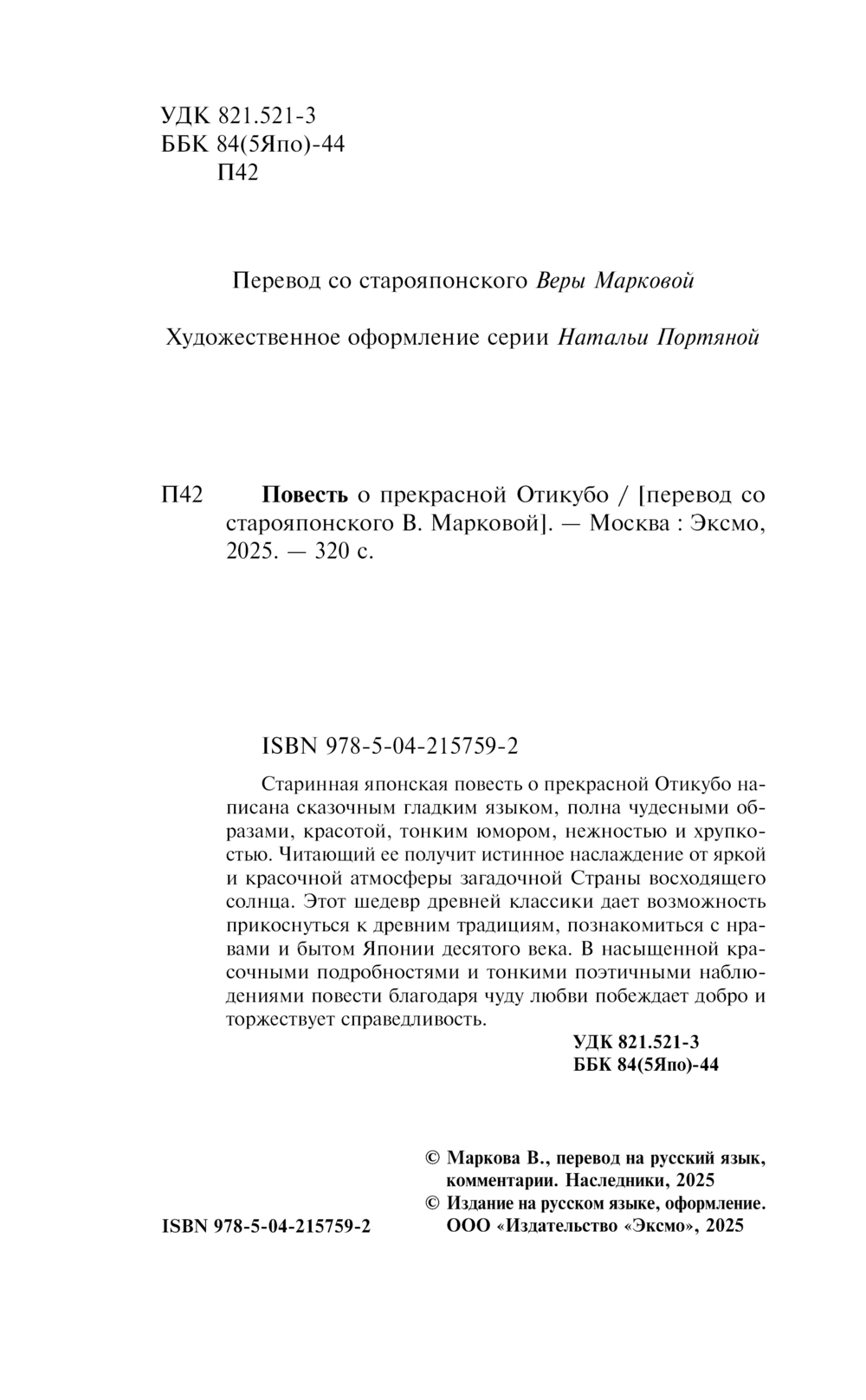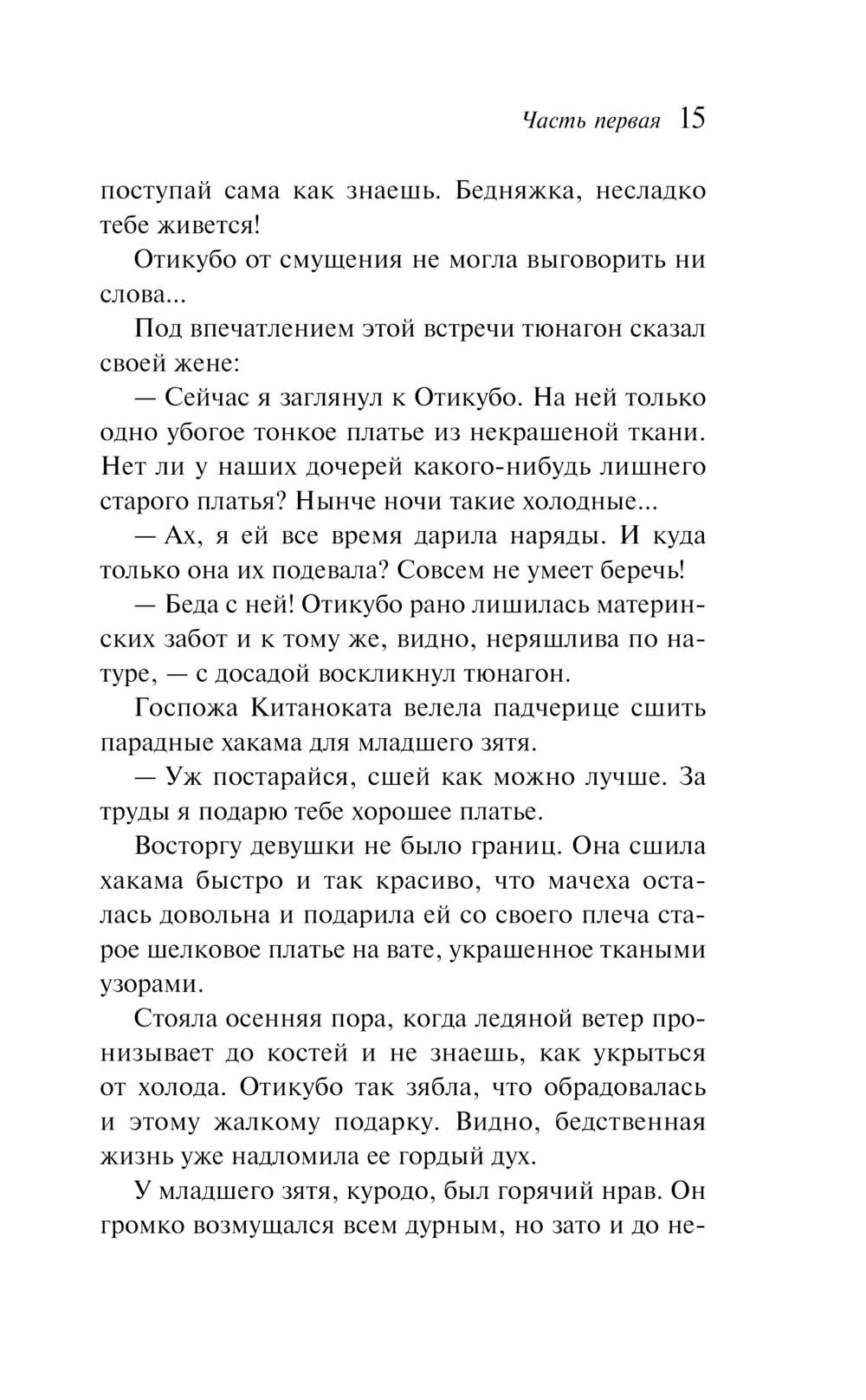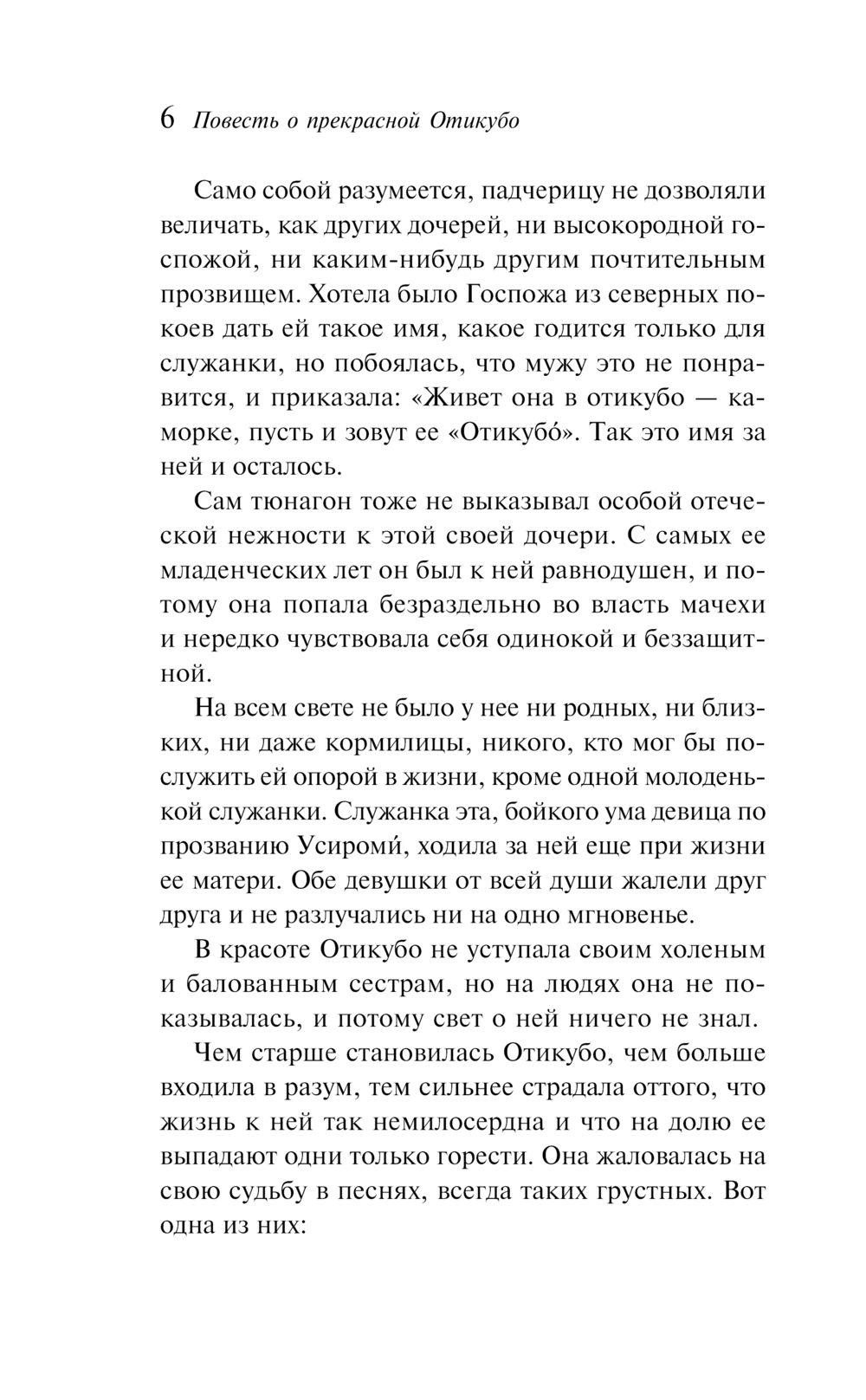 Старинная японская повесть о прекрасной Отикубо написана сказочным гладким языком, полна чудесными образами, красотой, тонким юмором, нежностью и хрупкостью. Читающий ее получит истинное наслаждение от яркой и красочной атмосферы загадочной страны восходящего солнца. Этот шедевр древней классики дает возможность прикоснуться к древним традициям, познакомиться с нравами и бытом Японии десятого века. В насыщенной красочными подробностями и тонкими поэтичными наблюдениями повести благодаря чуду любви побеждает добро и торжествует справедливость.
