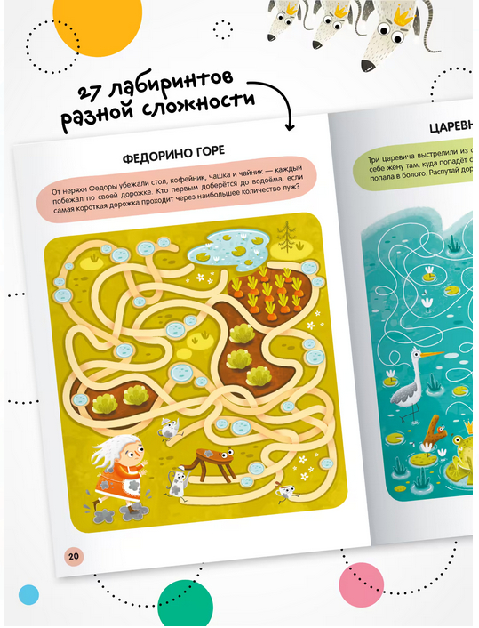 Книга – отличный выбор для юных любителей ходилок и бродилок. В книге вы найдете 27 лабиринтов разных типов и уровней сложности с ответами. Вместе со сказочными героями ребенок найдет выход из самых запутанных лабиринтов и поможет персонажам выполнить все задания. А еще лабиринты помогают развитию мелкой моторики, внимательности и мышления.