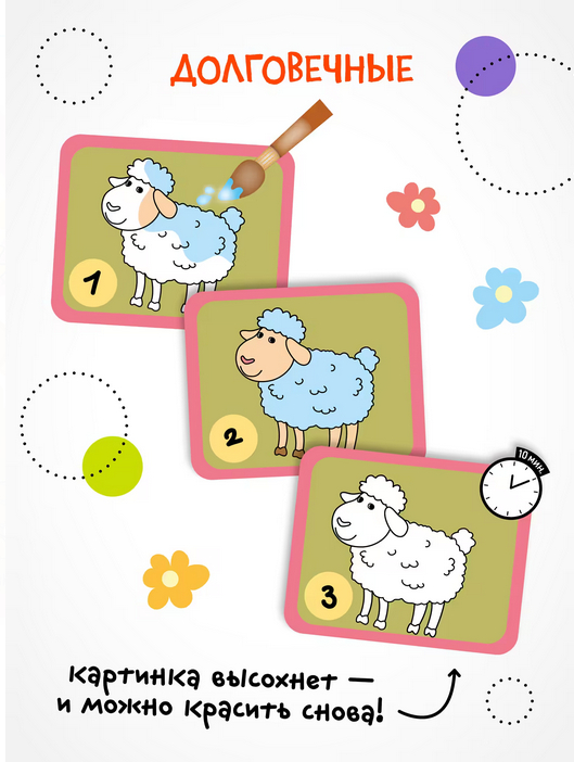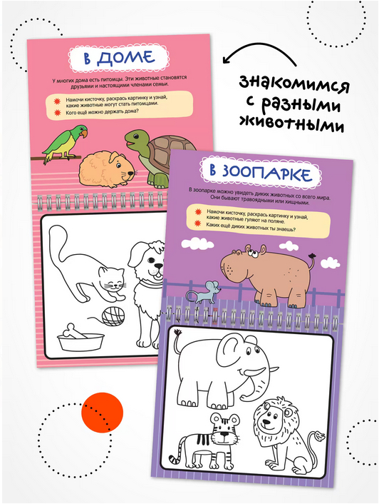 Странички для раскрашивания сделаны из картона и покрыты специальной краской. При контакте с водой она становится прозрачной, а рисунок – цветным! Стоит лишь провести мокрой кисточкой – и происходит настоящее волшебство. Забавные рисунки точно понравятся ребенку, а сам процесс раскрашивания не только увлекательное, но и полезное занятия для развития воображения, внимательности и мелкой моторики.