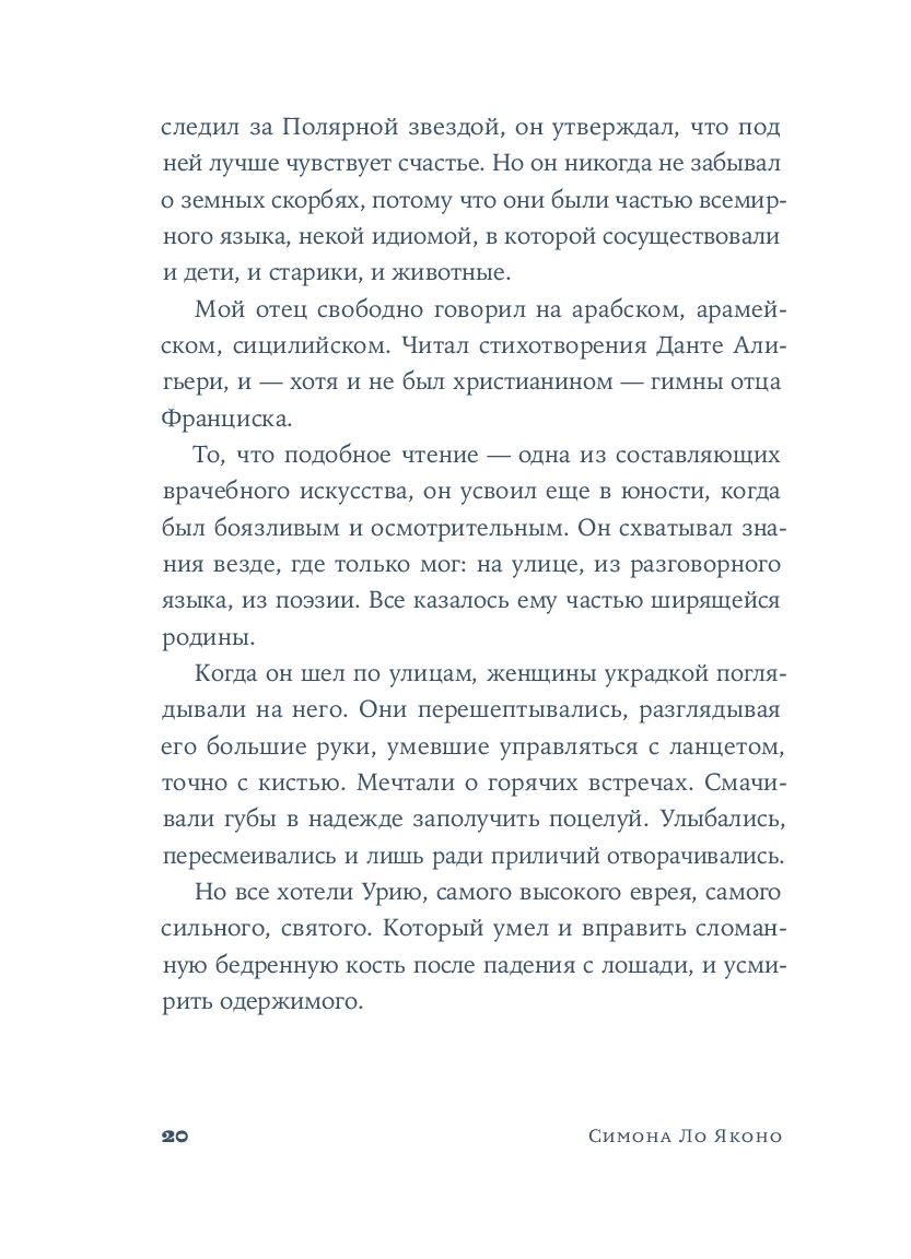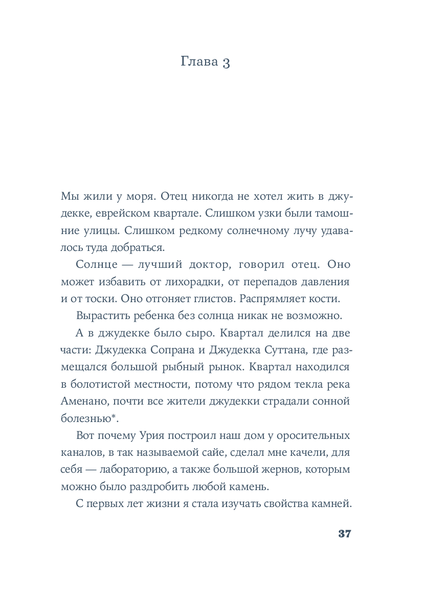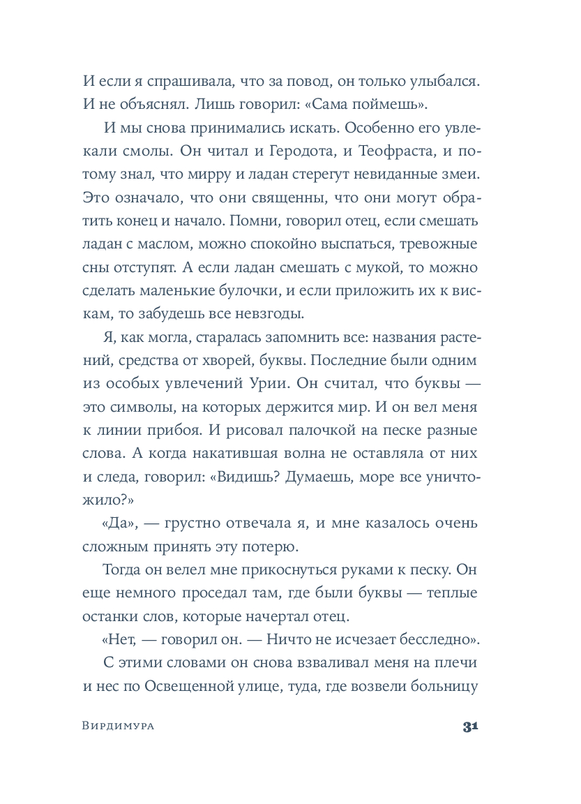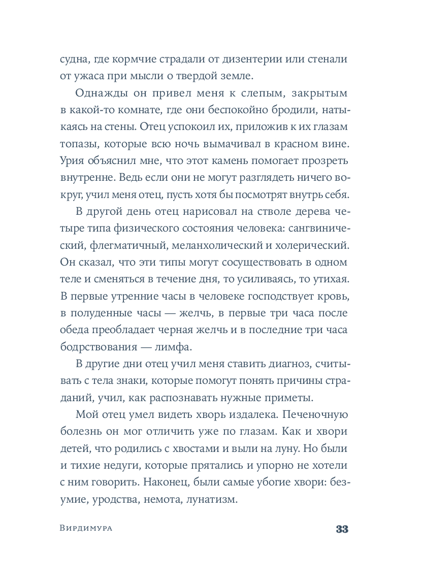 Вирдимура, родившаяся в день дождей и предзнаменований, носит имя мха, упорно появляющегося на городских стенах Катании. Ее воспитывал отец, мастер Урия – врач, владеющий тайнами целебных трав, редкими научными знаниями и многими языками. Он учил Вирдимуру исцелять тела и души, не делая различий между мусульманами, христианами или иудеями. Именно отец передал ей важный секрет: "Медицина не требует мастерства. Лишь навыка". Эти слова Вирдимура на склоне лет повторяет перед комиссией, которая решает, выдать ли женщине, впервые в истории, лицензию на врачевание.