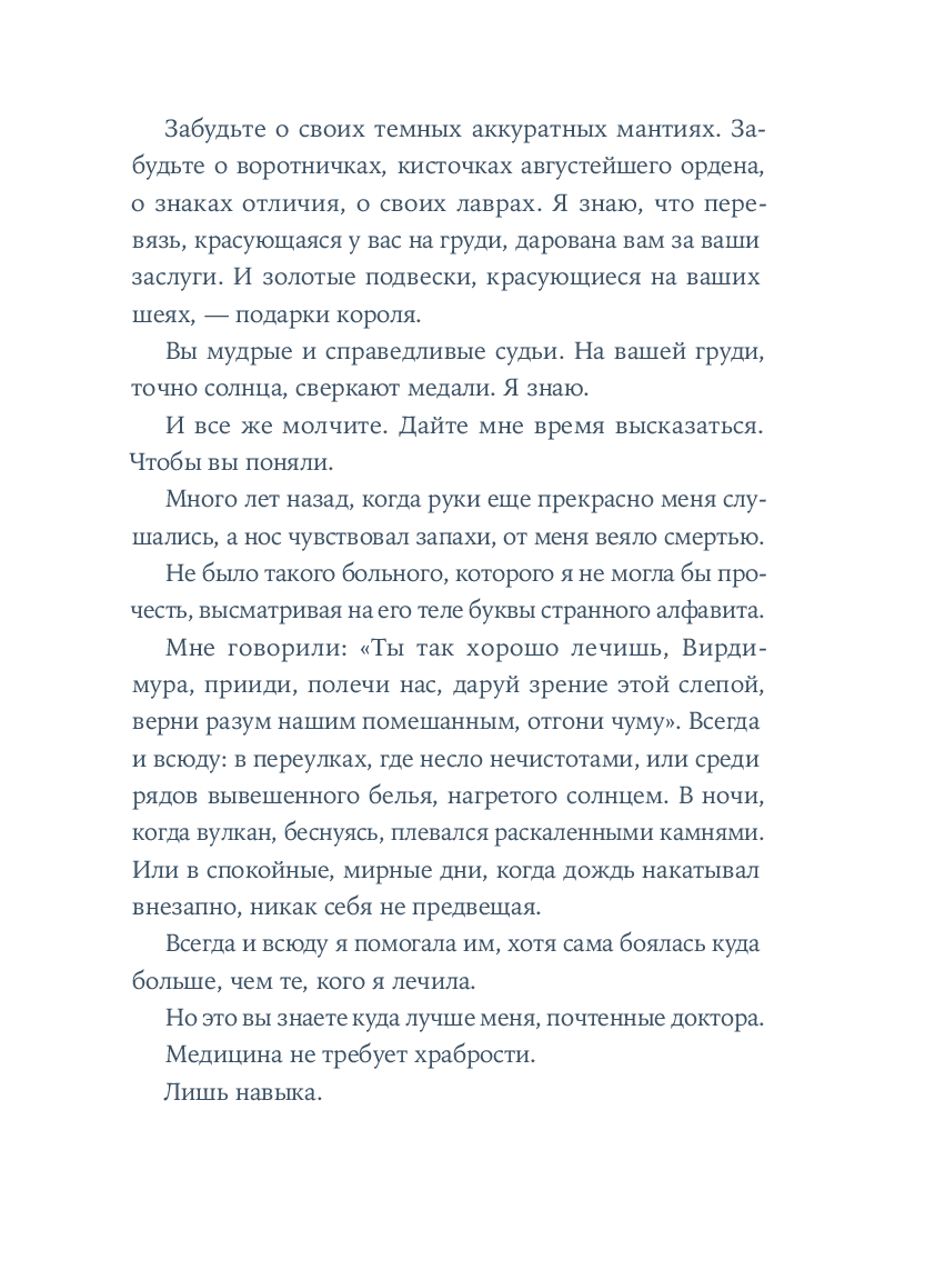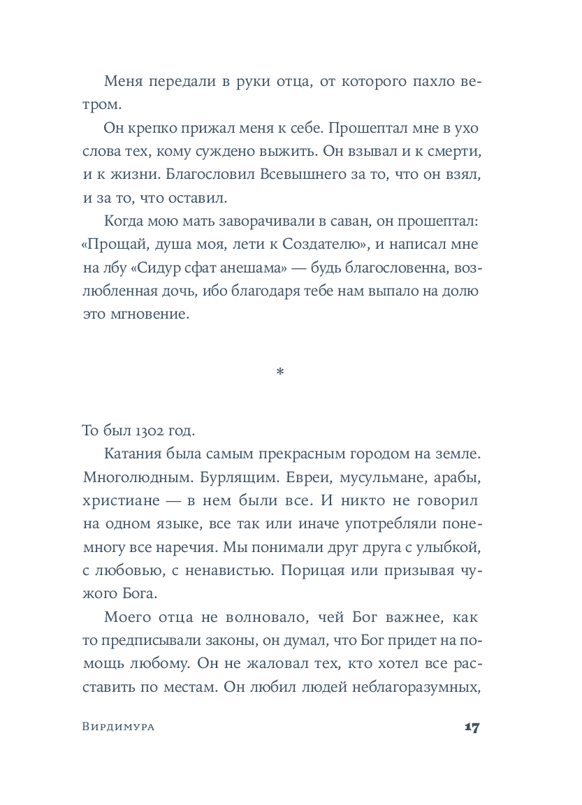В Италии XIV века, где судьбы пересекаются в тени кипящей Этны, Симона Ло Яконо создаeт грандиозный портрет гордой и мужественной Вирдимуры, которая борется с суевериями и законами, чтобы утвердить право любого человека на лечение, а женщин – на свободу.