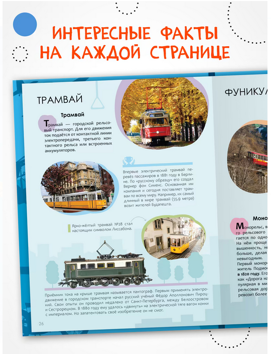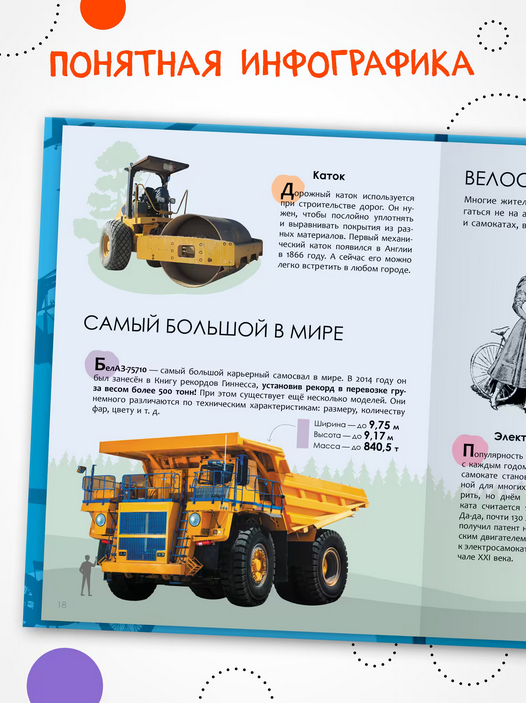 Книга – идеальный подарок для любознательного ребенка. Благодаря этой книжке ребенок сможет поближе познакомиться с разными видами транспорта и узнать, зачем понадобилось создавать все эти разнообразные машины. Интересные факты проиллюстрированы яркими фотографиями и понятной инфографикой, которые помогут полностью погрузиться в изучение предмета и узнать новое об окружающем мире.